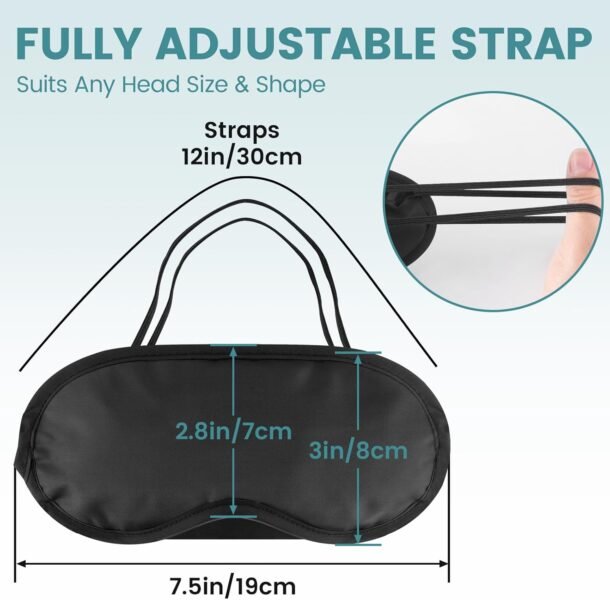 Review: These eye-masks are light as a feather, and don’t irritate my skin. And I can wear a mask throughout the night with no discomfort.The masks come in bulk because they’re semi-disposable – I get about week’s use out of one, then toss it.The straps are long, and the only way to adjust them is to tie a knot in the strings to get the snug fit that I like.As far as blocking out light, I give them an A-minus. A high grade considering the low price.