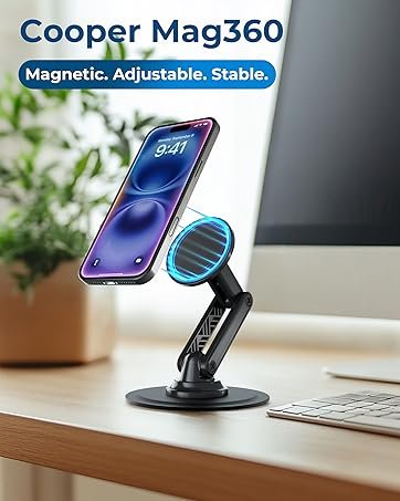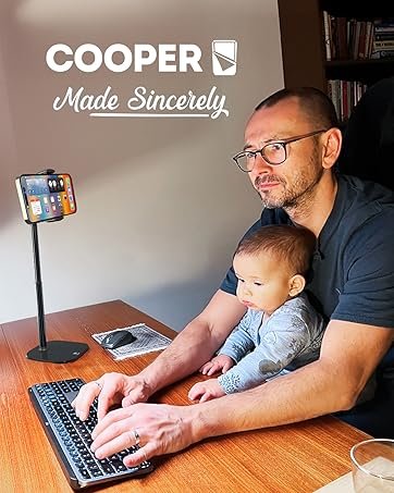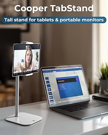 COOPER TabHolder, 7-10″ Height Adjustable Tablet Stand, Premium iPad Stand for Desk, 270° Tilt iPad Holder for Desk, Tablet Holder, 15.6-17″ Portable Monitor Support (Black)