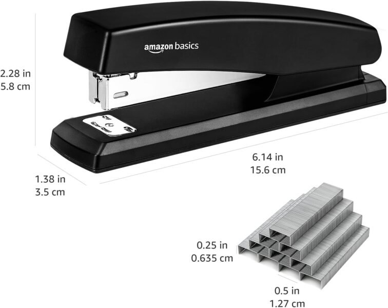 Reviewer: Melissa Rating: 5.0 out of 5 stars Title: Essential Office Workhorse, Great Value! Review: This 3-pack of Amazon Basics Desktop Staplers is an excellent product that offers essential functionality and fantastic value. The staplers are lightweight, easy to use, and reliably handle their $25 \text{ sheet capacity}$. The non-slip base keeps them secure on the desk. They come with 1000 staples, meaning they are ready to use right out of the box. They are a sturdy, economical solution for routine stapling tasks in a home office or school environment. Reviewer: SkyJ Rating: 5.0 out of 5 stars Title: Simple and Strong Stapler Review: This stapler works good on papers, even on thick papers it works really well. It feels solid and well made, staples smoothly without jamming, and it handles multiple pages effortlessly. I have used it for everything from a few sheets to thicker stacks, and it works every time with no issues.The grip is comfortable, the mechanism is smooth, and it doesn’t require much force to staple, which is a big plus for daily use. It also looks clean and professional on m desk.It comes with a small box of staples, which is really good. It will last for a while. Reviewer: J. Kevin White Rating: 5.0 out of 5 stars Title: Great Value Review: For the price, this stapler is amazing. It works perfectly and is just the right size. It is also very light. Reviewer: pooda Rating: 4.0 out of 5 stars Title: . Review: Great stapler Reviewer: imstan Rating: 5.0 out of 5 stars Title: Easy to use, Easy to load the staples, very affordable Review: This may just be a basic stapler, but it works very well. It advertises that it can staple 25 sheets, but I was able to staple 29 together, and the crimp on the last sheet was still sufficient to hold them together. If you’re only doing 10 or fewer sheets at one time, it is quite easy to hold the stapler in your hand to staple. Anything over 10, it’s best to put it on a table and push down to staple them together.The kit comes with a little box that contains 1000 staples. You can put 2 packs of staples into the stapler at one time. The spring inside the stapler will continue to push out more staples even when you get down to the last staple without jamming. Reviewer: Papageorgio Rating: 5.0 out of 5 stars Title: Good Review: Works fine, staples included is 👍Good price Reviewer: Connie Perry Rating: 5.0 out of 5 stars Title: Excellent Quality Review: Excellent working stapler. Easy to use. Comes with box of staples. I stapled 10 papers together and it went through easily. Would definitely recommend. Reviewer: Micah Rating: 5.0 out of 5 stars Title: Simple, sturdy, and surprisingly satisfying — a great everyday stapler Review: I picked up the Amazon Basics Stapler with 1000 Staples (25-sheet capacity, black) because I needed a reliable stapler for school papers, home projects, and general desk organization — and it’s turned out to be one of those small but genuinely useful purchases that quietly makes everything easier.First off, I really appreciate that it comes with 1,000 staples included. That alone makes it feel like a complete starter set right out of the box. No scrambling to find compatible staples or placing another order — you can start using it immediately, which I always love.The stapler itself feels solid and well-built. It has a nice weight to it, so it doesn’t slide around while you’re using it, and the non-slip base actually works. I can staple papers one-handed without chasing the stapler across my desk, which sounds minor but makes a big difference during busy moments.What impressed me most is how smooth and consistent it is. Staples go in cleanly every time — no bending, no half-stapled pages, no frustrating jams so far. I’ve used it on everything from a few sheets of paper to thicker packets, and it handles stacks easily within its 25-sheet capacity. The action feels firm but not stiff, so it doesn’t strain your hand even when stapling multiple sets.I also really like the simple, professional design. The black finish looks clean and modern, and it blends perfectly into any desk setup. It doesn’t feel cheap or plasticky — it feels like a proper office tool that’s built to last. Sometimes basic supplies can feel flimsy, but this one definitely doesn’t.I’ve been using it for school assignments, printed worksheets, organizing paperwork, and small craft projects, and it’s been completely reliable. It lines pages up well and holds stacks securely without tearing or damaging paper. Everything just feels neat and organized afterward.Another thing I appreciate is the classic Amazon Basics approach here: no unnecessary features, no overdesign — just a straightforward, functional stapler that does exactly what it’s supposed to do. It’s easy to load, easy to use, and dependable. Honestly, that’s all I ask for in office supplies.Of course, this isn’t meant for industrial-level stapling or massive packets, but for everyday home, school, or office use, it’s more than enough. If you need something reliable for regular paperwork, this fits the bill perfectly.Overall, I’m really happy with this purchase. It’s affordable, comes with staples, feels sturdy, and works smoothly every time. It’s officially become my go-to stapler, and I don’t see myself replacing it anytime soon.Highly recommended for anyone who wants a dependable, no-nonsense stapler that just works — practical, sturdy, and absolutely worth it. Reviewer: Coco Rating: 5.0 out of 5 stars Title: Review: Nice quality, works as described, no issues Reviewer: J******* Rating: 5.0 out of 5 stars Title: Review: I had a few of these to make for teacher gifts. Happy that they came in a packs and were a great price. They were easy to disassemble and put together to add the resin coating. They worked great. No issues. Best of all the teachers were really happy with them. Reviewer: karthikeyan Rating: 5.0 out of 5 stars Title: Review