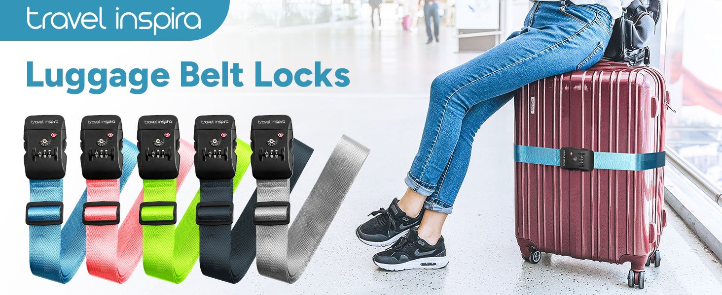Travel Inspira Luggage Straps for Suitcases with TSA Lock, Protect Your Luggage Anti-Burst, High Visibility Color, Easy to Identify Luggage Adjustable Heavy Duty Belt for 20-32 Inch Suitcases