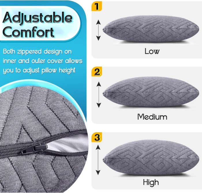 Memory Foam Travel Pillow: Filled with mixed shredded memory foam and polyester fiber, our travel pillow provides balanced support between softness and firmness, ideal for sleeping when travelling, camping, backpacking, hiking, airplanes and other outdoor activities. Zipper designs allow you to easily adjust pillow filling for ultimate comfort Breathable and Soft: Crafted with premium microfiber pillow cover, the camping pillow is super soft to touch and of great breathability, keeping you cooling and fresh, perfect to use in all seasons Compact and Portable: Measuring 15.5” L x12” W and coming with a practical travel bag, you can easily carry this small pillow for camp or travel. Two sizes are available for adults and kids as camping essentials, using together with your sleeping bag Multi-functional Camp Pillow: Not only for travelling, this travel size pillow is also perfect to use for car, neck, back and lumbar support, making it an ideal gift for friends and family members Easy Maintenance: Machine wash the outer pillowcase in cold water, do not bleach or use fabric softener, tumble dry low. Please let pillow relax at least 48 hours to recover full fluffiness after opening package %$#