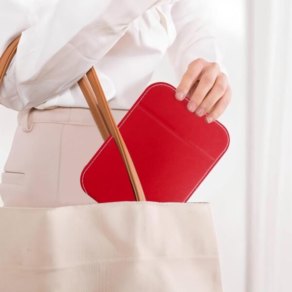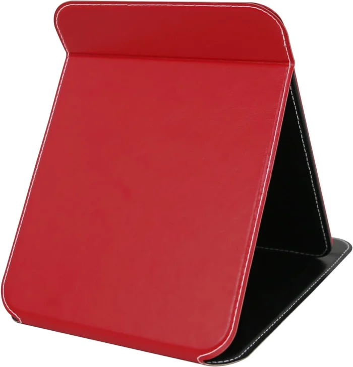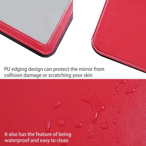 Travel Mirror for Desk, 6.5×8.9” Adjustable Rectangle PU Edge Covering Red Foldable Desk Mirror with Stand for Travel Camping Home (Red)