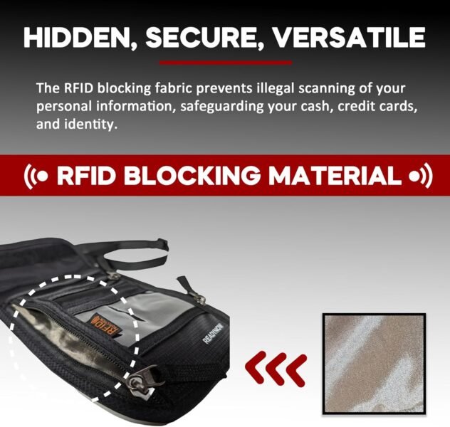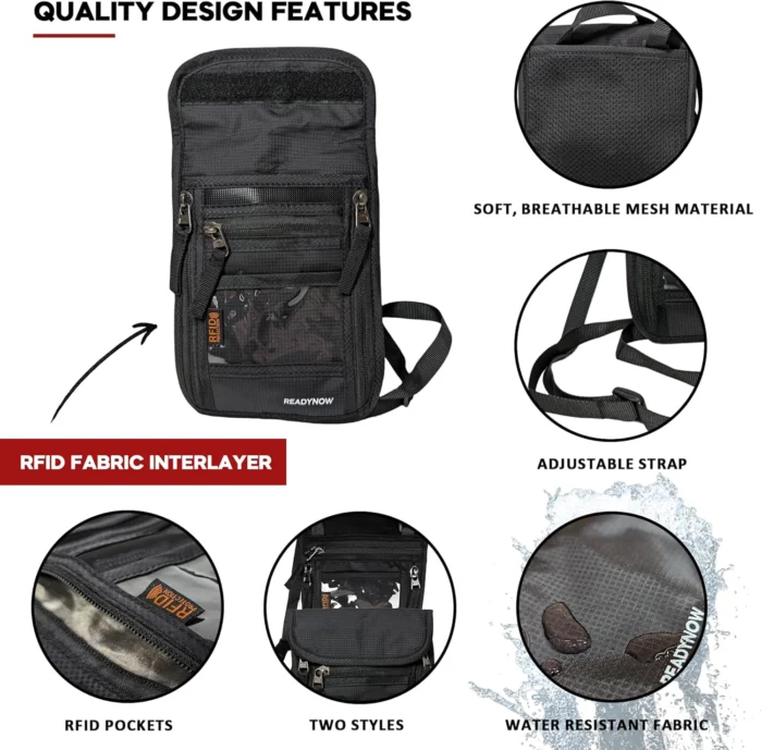 Review: Solidly built, well-made neck wallet. I appreciate a variety of pockets & the security of having zippers. It looks like it’ll hold my passport, phone, wallet, & any related papers quite easily as I travel. That it’s crafted of nylon makes it light & water-repellent. And the neck lanyard feels well-attached: I wouldn’t say ‘sturdy,’ but ‘sufficient’ is a good descriptor.The zippers on the outside pockets were zipped but had partly separated in the bag when I opened mine. This is probably due to rough handling. They’ve zipped up/down just fine since then, though, & I expect no issues with them.(I can’t speak to the RFID feature as I have no way to test it, but I assume it’s legitimate or it wouldn’t be advertised as such).This neck wallet represents peace of mind to me as we’ll be traveling to Thailand in a few months. To be able to hold our documents securely on my person under my shirt, especially while sleeping on the plane or navigating the airports/streets will be a great help.Warmly recommended.