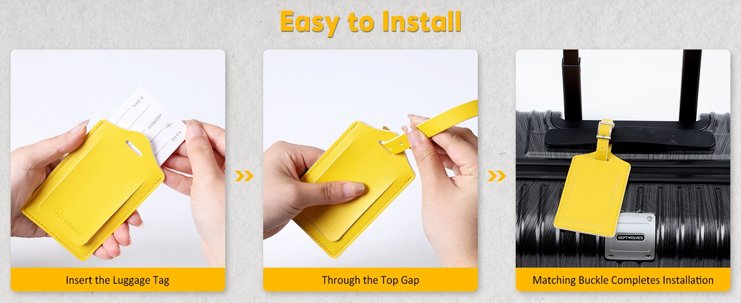 Yes, our luggage tags feature a user-friendly design for easy attachment and removal. They typically come with a secure buckle that can be quickly fastened to your luggage handles or straps, providing a hassle-free experience