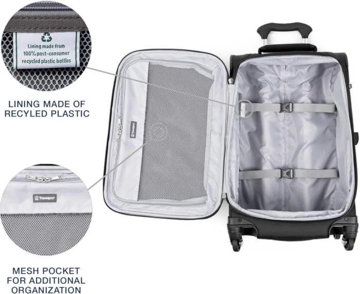 #$% Travel light and move easily with this ultra-lightweight, durable 21-inch expandable carry-on spinner. Designed for comfort and effortless mobility, it features a 2-position adjustable PowerScope Lite handle with a patented Contour Grip and 360° spinner wheels for smooth rolling in any direction. Two exterior quick-access pockets, a full-length interior lid pocket, side accessory pocket, and adjustable hold-down straps keep your belongings organized. A high-tensile-strength expandable zipper provides up to 2 inches of extra packing space. Sizer bin tested to fit in the overhead bins of most major U.S. airlines. Backed by Travelpro’s Limited Lifetime Coverage and 1-year Trusted Companion Promise, covering repairs and shipping for airline or carrier damage.
