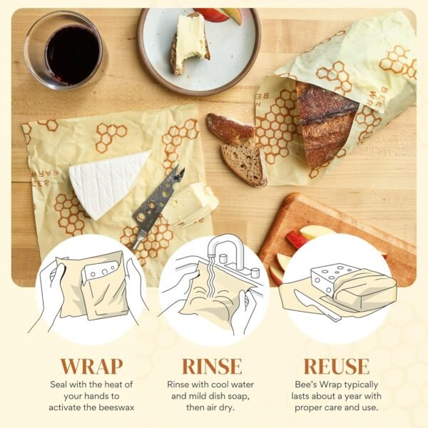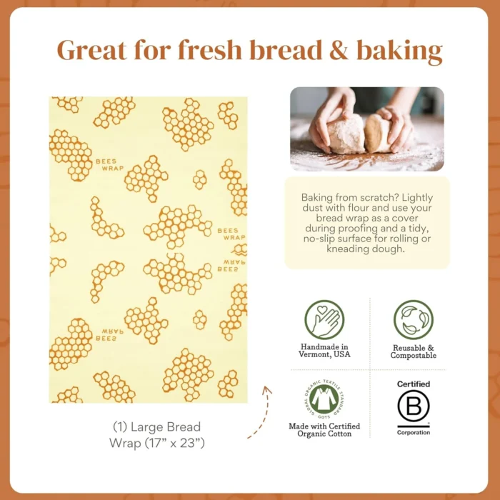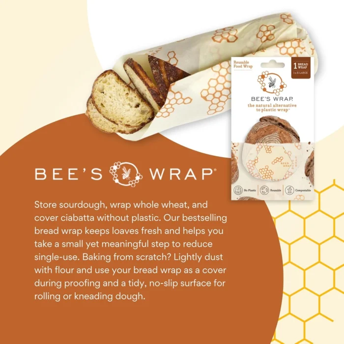 Bee’s Wrap Beeswax Wraps for Bread – Beeswax Bread Wrap for Sourdough & Bread Storage – Made in USA Reusable Natural Food Wrap – Honeycomb