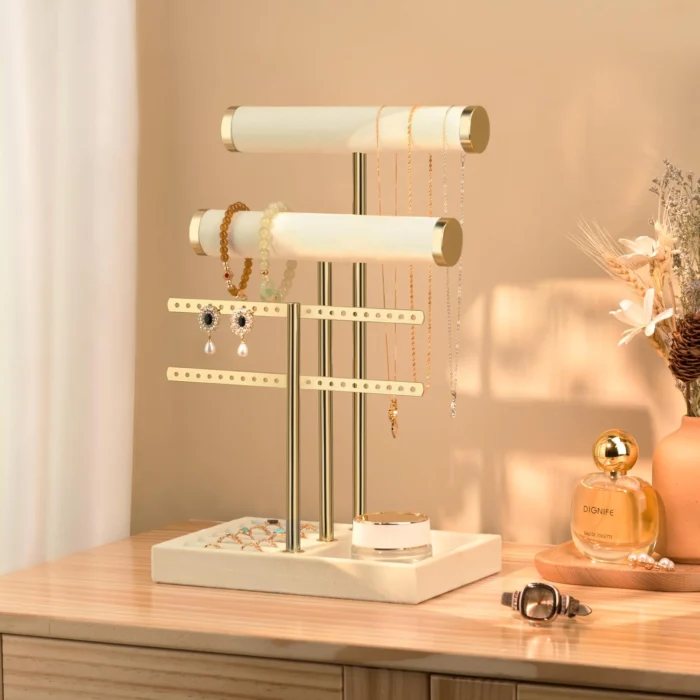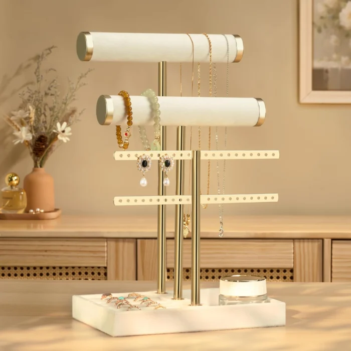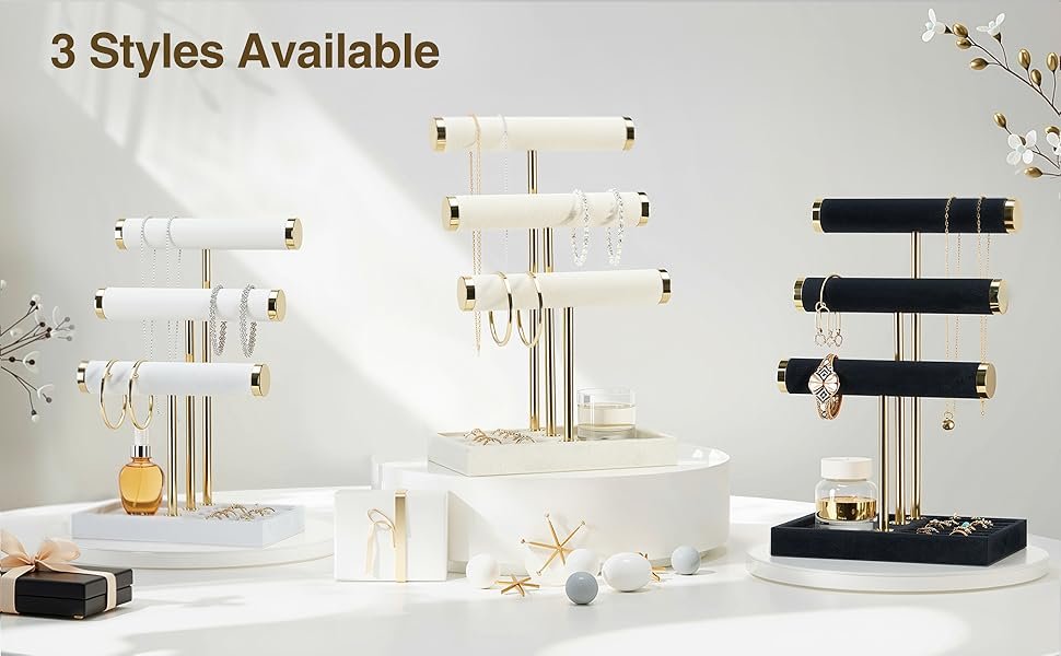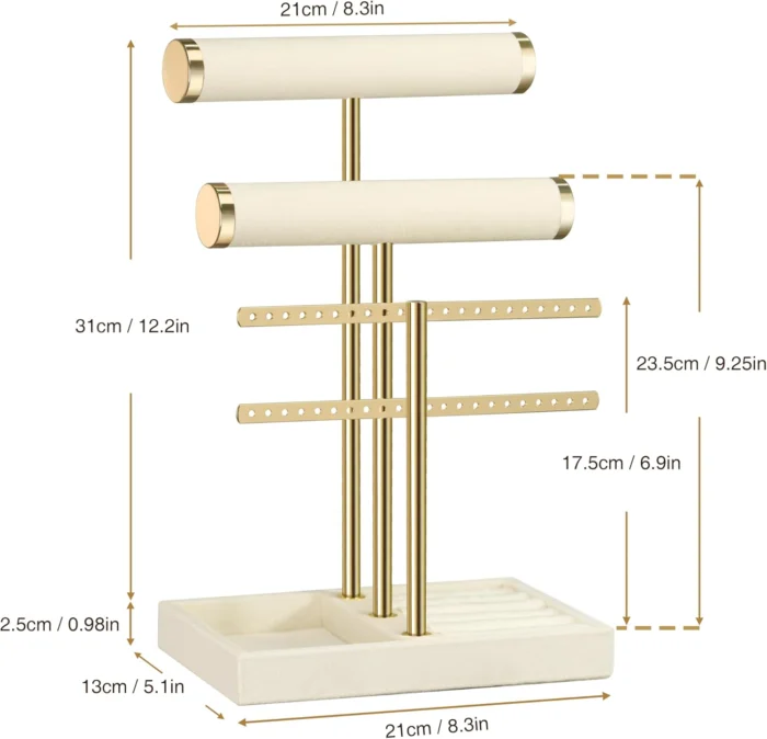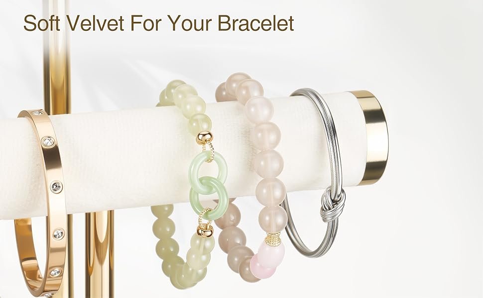 3 Tier Bracelet Holder Display – Detachable T Bar Beige Velvet Bracelet Holder, Jewelry Holder Organizer for Bracelet, Necklace, Earrings, Rings