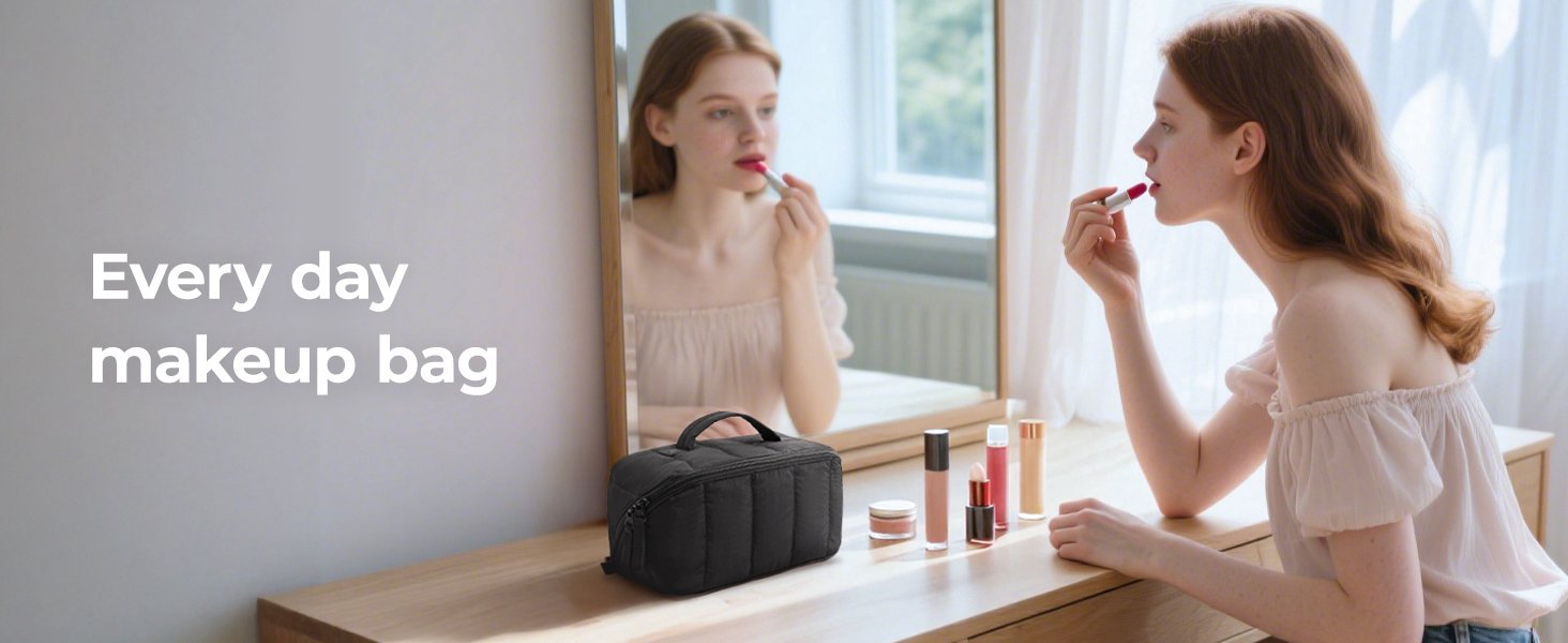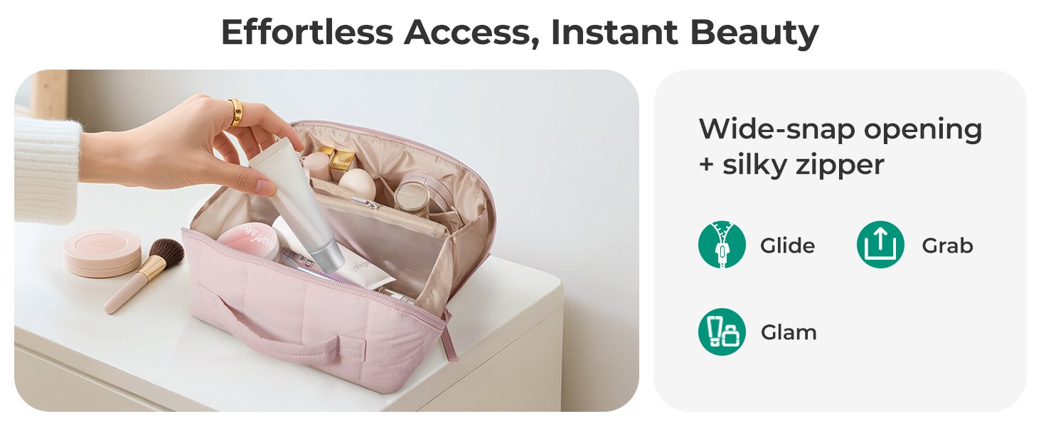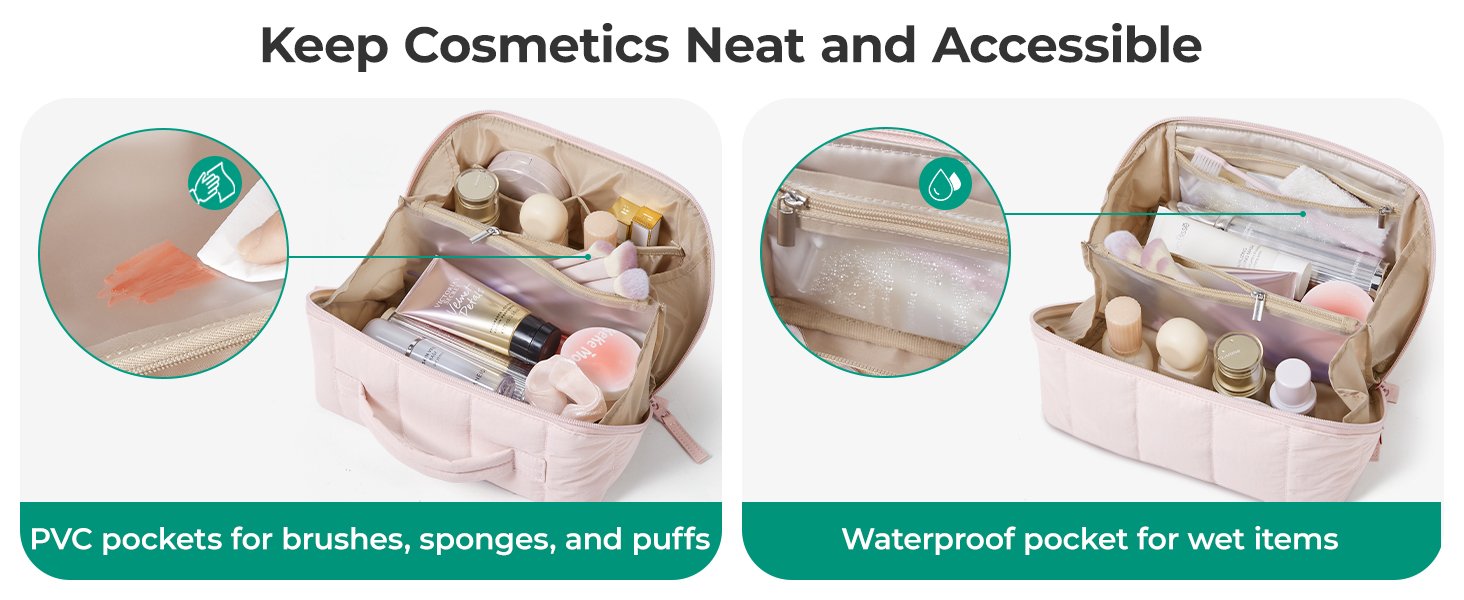Chic Quilted Design: Elevate your style with our makeup bag’s exquisite quilted exterior, designed to be both fashionable and functional. The plush construction not only adds a touch of elegance but also ensures comfort when carrying. This stylish accessory is perfect for those who want to showcase their personality while keeping their essentials organized.