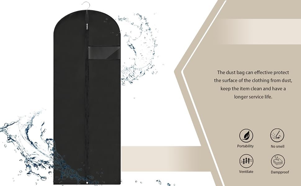 Protective Coverage: These bags offer a shield for gowns and suits, safeguarding them from dust and damage during storage and transport. Easy for Travel: Crafted for convenience, these garment bags are lightweight and easy to fold, making them ideal for both storage and travel. Clear Identification: Each bag features a visible window allowing you to quickly see and choose your outfits without unpacking. Ample Storage: These bags give you plenty of room to store and protect multiple pieces of clothing at once. Sturdy and Reliable: Designed to withstand both home storage and travel demands, these suit bags keep your clothes protected wherever they are stored. %$#