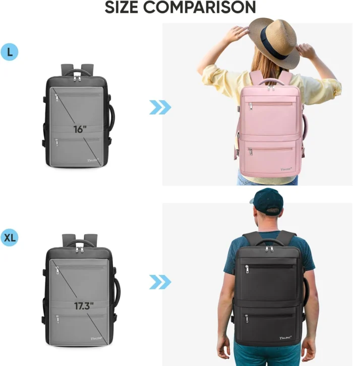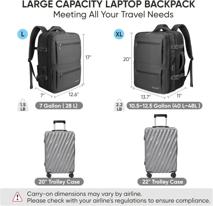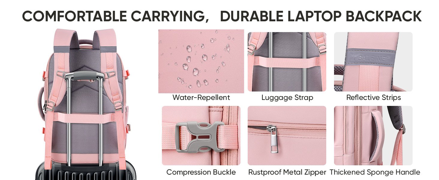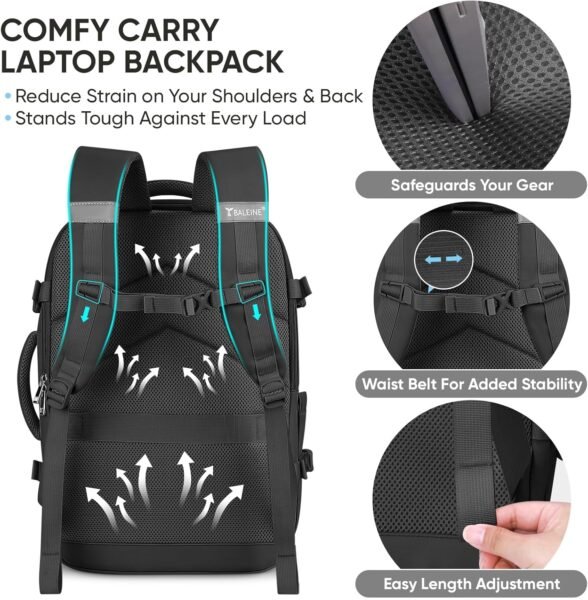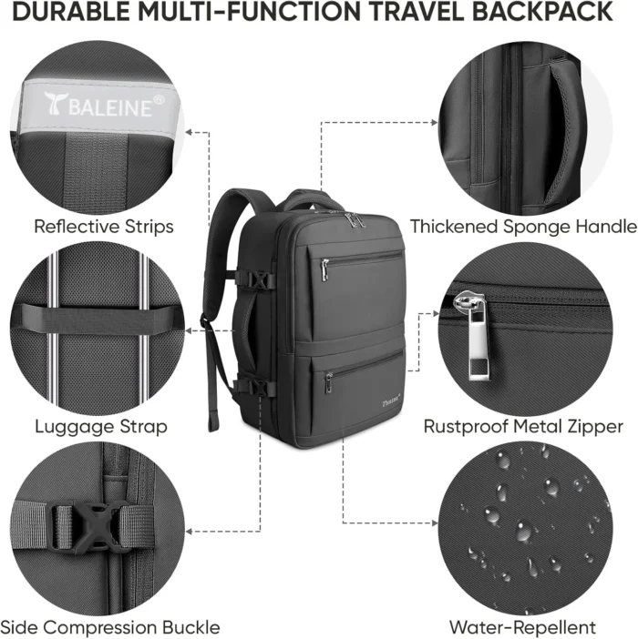 BALEINE Travel Backpack for Women Men, Large Sturdy Carry On Laptop Backpack Gifts for Business, Casual, Weekender, Hiking (Large, Black)