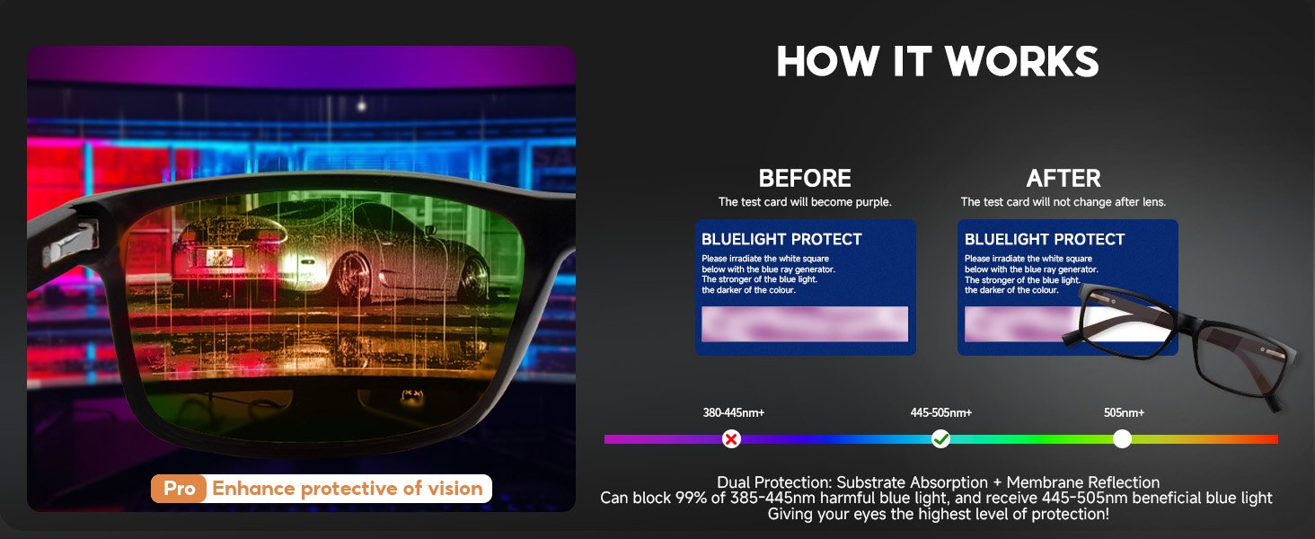 Boost Sleep Quality – These scientifically-designed gaming glasses block sleep-disrupting 385-445nm blue light wavelengths before bedtime. Maintain healthy circadian rhythm and wake up refreshed – ideal for night owls and gamer glasses enthusiasts.