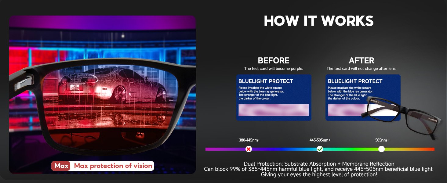 Review: I give these glasses a 5 star review. Let me start with this right awayI am legally blind and extremely light sensitive. I’ve been meaning to get these glasses but been forgetting to get em. For some reason I wanted the same technology but on my computer screenThe it hit me, What if I always have that blue light blocking on my eyes all the time instead of just on my screen??It’s funny at first, when you first have the blue light blocking feature on your phone, it looks like the colors are lifeless. Once you get used to it and switch back to normal?? You get wow-ed how bright the colors areThat’s what these glasses do! They do exactly what they’re designed to be, take the blue light away. I’ve always been sensitive to the light since birth. As I’m getting older, my eye stamina has been getting lower and lower. These help so much!They are a decent quality, they’re not safety glasses, so they’re not made to handle abuse. The frames are thicker, which I llke, they’re not wirery. They have a basic style that should look good on most people’s faces. These don’t magnify. The functionality is perfect, they fit just fine and are comfortable. They’re also well worth the money.If there’s better ones, these are a great start and I’m very impressed