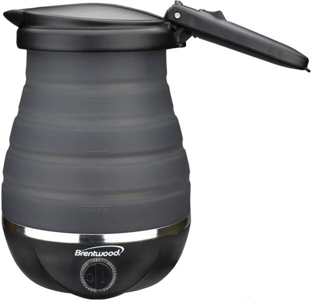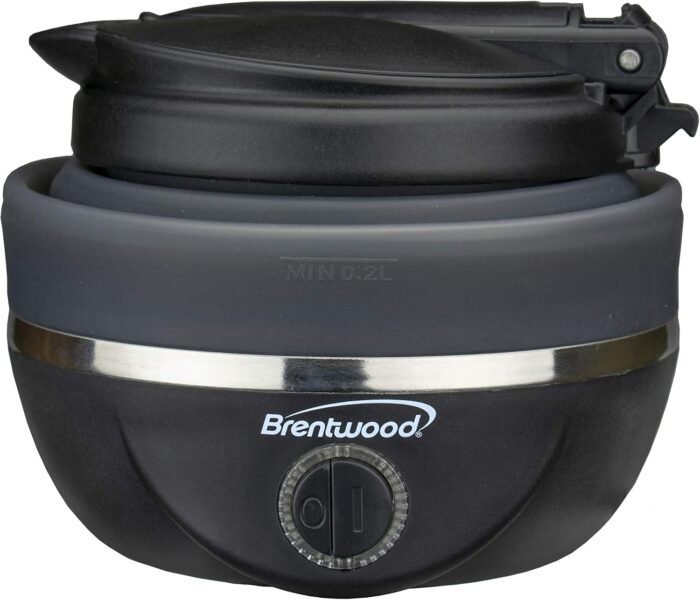 Reviewer: donna w alcott Rating: 5.0 out of 5 stars Title: Awesome Travel Kettle Review: This thing is brilliant. I never leave a review unless there is a negative thing I want others to be aware of before they buy – but this little kettle is the bomb. I researched so many options and am glad I got this one.Collapses easily. Heats quickly. Pours nicely. Works consistently. Large capacity.My only hesitation when I bought it was the design of the fold out handle but that works well too.All pros and no cons. Reviewer: “kinar” Rating: 5.0 out of 5 stars Title: Great travel item Review: This traveling tea kettle is the perfect size to fit in your luggage but also to make two cups of tea. The kettle was easy to fold and to clean. The silicone material looks great, is a good quality, and quite durable. I got to enjoy flavors of tea I wanted in my hotel room and the balcony. I recommended it to several friends. Reviewer: PGL Rating: 4.0 out of 5 stars Title: Overall good Review: I tried several different travel kettles. This initially has a little smell with silicone however once you take care of it per instructions next day no smell. A little bigger and heavier than other kettles yet we like it as it will fill 2 13 oz presse coffee. It takes about 7+min to heat water. The only downsides of this kettle is that the fill lines do not show up clear so you have to end up feeling for it like braille to fine the levels. It would be great if the made the fill marks visible. Additionally when collapsing the kettle it does not easily fold up you have to kind of push the silicone levels in place… I tried it both with lid open and close same thing. Finally would be nice if it had a detachable electric cord vs notHowever overall we liked the strudiness of the kettle and plan to use it on our next trip Reviewer: Stephanie Schmidt Rating: 5.0 out of 5 stars Title: Great addition to my travel necessities! Review: Love this kettle for travel. Makes it so easy to have coffee or tea anytime in a hotel room. In some countries we have even used it for making hot water for bathing! Wouldn’t travel without it! Reviewer: L. Blake Rating: 5.0 out of 5 stars Title: Great kettle for a camper van Review: Bought this kettle for use in my camper van and it does everything needed. Collapses down for stowage, rugged enough to survive bumpy roads, expands and holds enough water for a full pot of tea.Measured the power and it averaged about 792 watts; about 62 amps in my system (nominal 12.6VDC – 2000W PSW inverter). It takes almost exactly 6 minutes, or about 6.2 Ah to boil the full kettle.Faster and easier that using a propane or butane stove, and no fumes in a small camper. Fill it up, plug it in, continue fixing other stuff and when the auto shut-off trips….make the tea. No waiting and watching, and no boiling over. Set it aside to cool off, have breakfast, then collapse the kettle and stow it. Easy.I started by boiling a few kettles of water with a little white vinegar to get rid of any taste and now it’s clean and clear.Haven’t had it long enough to evaluate long term reliability, but for the price it’s a great buy. Reviewer: C. Kim Rating: 5.0 out of 5 stars Title: Compact packing, stays upright Review: This little kettle worked great while traveling. The handle folds so it packs small-ish. The silicon is stiff enough to stay upright. Easy pouring with no risk of touching a hot surface. Pay attention to fill line as I didn’t check first time and it boiled over. Quick boiling and kettle contains enough for two cups. Reviewer: Greg J McLaughlin Rating: 5.0 out of 5 stars Title: Perfect travel Kettle for morning tea and French Press Coffee Review: Amazing travel kettle. Use it to make tea and French Press coffee every morning while on the road (instead of hotel coffee pot). Pack down to almost nothing and has worked reliably for a number of years. Reviewer: A.L.A. Rating: 5.0 out of 5 stars Title: Our New Favorite Thing! No Funny Taste & No Trouble With TSA Review: We live in a time where there is such a thing as a collapsible, travel tea kettle. What a time to be alive! This little beauty is a life changer for traveling. It fit nicely in a carry-on and we had no trouble getting through airport security. A full pot boiled in about 5 minutes and fit enough water for two 16 ounce cups (saving room for milk).Before using it for tea, I boiled plain water in it twice. Then I boiled a little white vinegar and water and then once more with just plain water. That seemed to do the trick because there was no plastic taste in our tea. Also, there were no funny odors when the tea kettle was in use.This kettle is an absolute must have for traveling! And for those of us with celiac, it’s an easy way to bring a clean and safe appliance on trips. Reviewer: Louise Rating: 5.0 out of 5 stars Title: Review: Bought this dual voltage item foe our Europe trip. Easy to change from 110 to 220. Collapsible works well. Filled it to maximum and it boiled in 2 min 45 sec. The automatic stop works well. No smell, no weird taste. This is an incredible item. Would recommend and would buy again. The Brentwood company was great compared to another company that never delivered even after 3 months of making the order. Reviewer: Sophia Irons Rating: 5.0 out of 5 stars Title: Review: Love it for travelling with my daughters hockey team! She gets hot oatmeal for breakfast! Reviewer: Mikey Rating: 5.0 out of 5 stars Title: Review: This folding kettle really surprised me with it’s build quality and function. I travel for work on various continents, and always need a kettle for making early morning coffee etc. I love how compact and portable this is but it still feels like it will last and be reliable. It’s great that I can set it for 120 and 220 volt and take it everywhere. Reviewer: Connor Rating: 5.0 out of 5 stars Title: Review: The perfect solution for my frequent travels from Canada to Chile. Kettle has a flat-head screw style swi