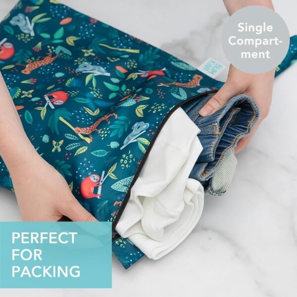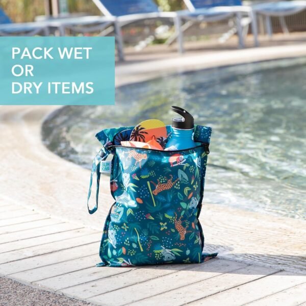 Bumkins Waterproof Wet Bag for Baby, Travel, Swim Suit, Cloth Diapers, Pump Parts, Pool, Beach, Gym Clothes, Toiletry, Hook to Stroller, Daycare, Zipper Reusable Wetdry Packing Pouch, Jungle