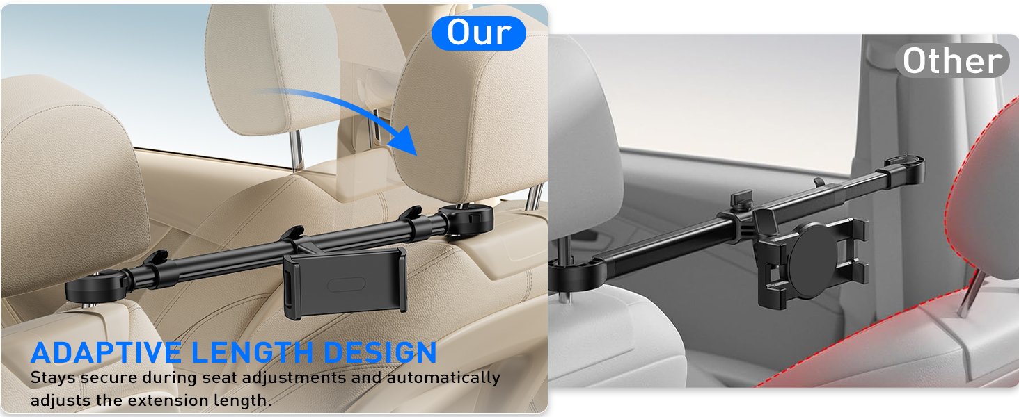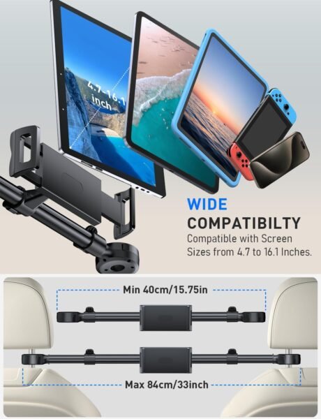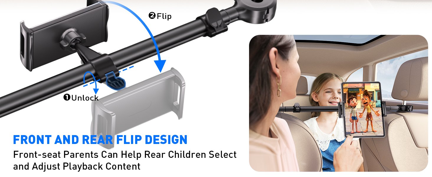 Tryone Car Headrest Tablet Holder for iPad: [Front & Rear Flip Mount] Adjustable Back Seat Tablet TV Portable Screen Holder, Car Road Trip Essentials for Kids Compatible with 4.7-16.1″ Devices