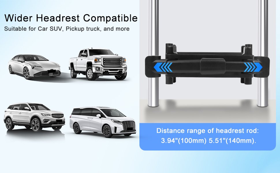 Wider Headrest Compatible: The adapted distance range of headrest rods is 3.94″ – 5.51″, for Car SUV, Pickup truck, and more; The max diameter of the headrest hook is 0.67″; Can’t fit the backseat without headrest rods. headrest phone holder is an road trip essentials, make your long trip comfortable and safe. %$#