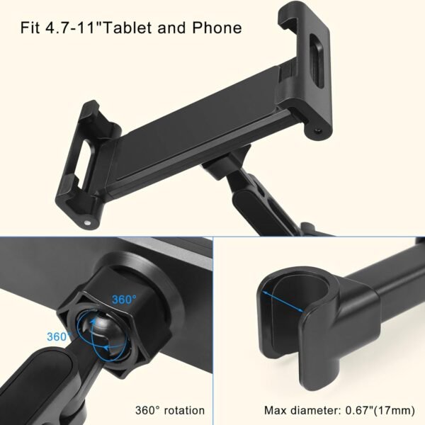 360 Rotatable & Easy Installation: The back seat tablet holder for car come with a 360 degrees rotation ball, which can adjust your tablet with portrait or landscape angles, so it is easy for you to find a comfortable viewing angle as needed. headrest tablet holder is easy to install without using any tools, you only need adjust the expandable leg of backseat headrest mount, so it can be installed immediately.