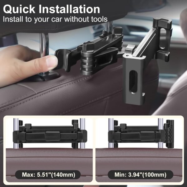 Devices Compatibility: The universal tablet holder for car headrest is suitable for diagonal lengths of 4.7 – 11″ devices, car headrest tablet holder suitable width of the screen is 5.5 – 8.6″, car tablet mount Compatible with iPad Pro 11/10.5/9.7 inch, Compatible with iPad 10 9 8 7 6 5 4 3, Compatible with iPad Air 5 4 3 2 1, Compatible with iPad Mini 6 5 4 3 2, smart phones and other tablets.