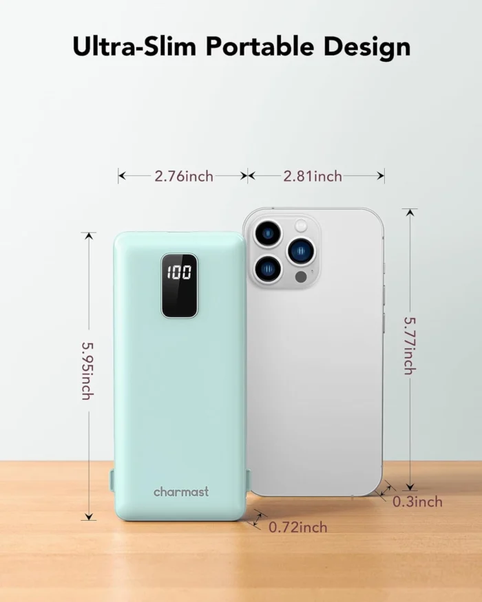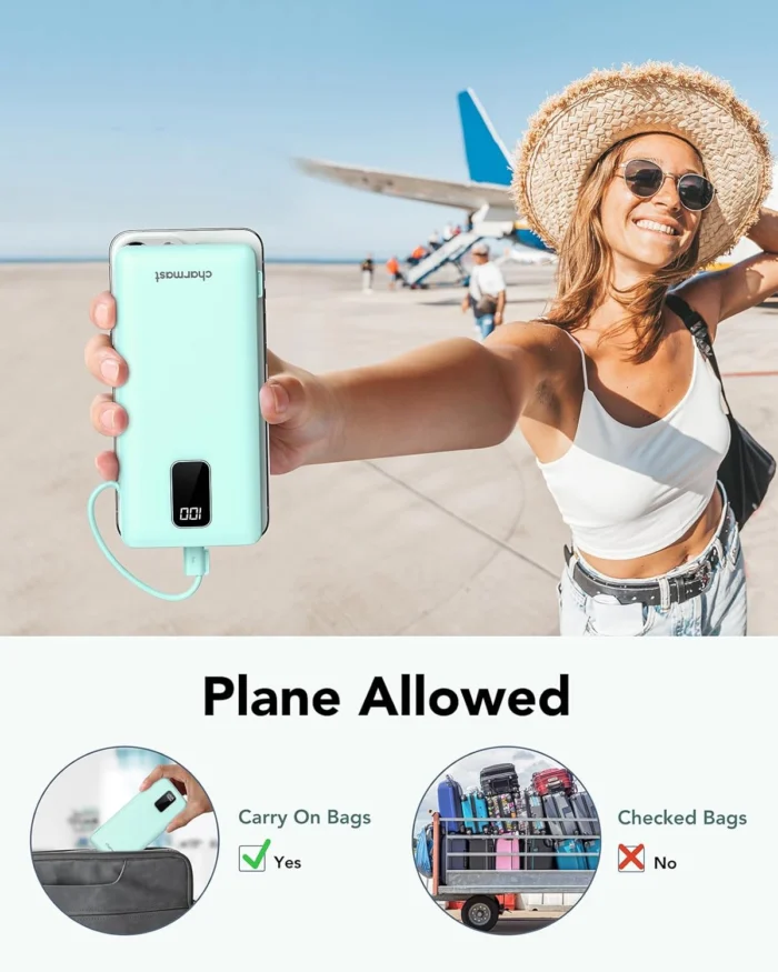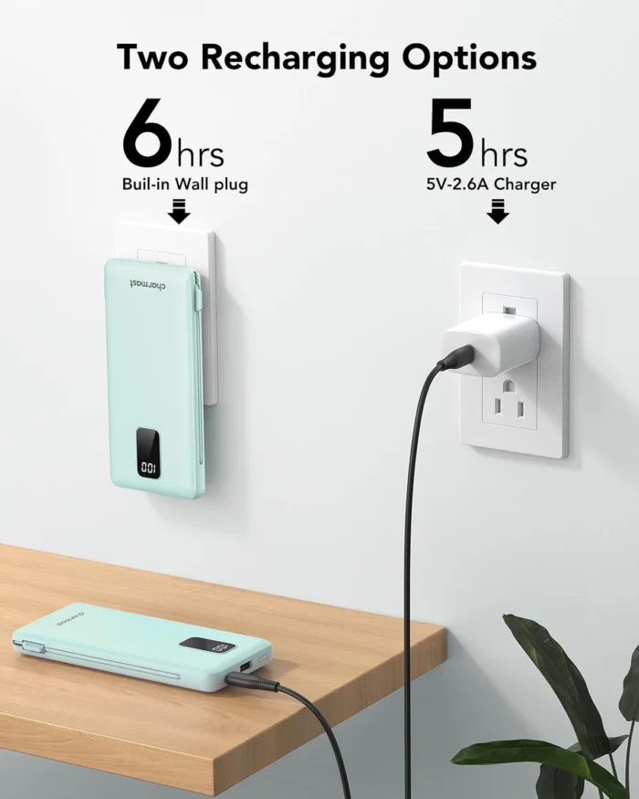 Review: I absolutely love the Charmast Portable Charger with the built-in cable. I’ve purchased multiple of these already and will probably continue to buy more because of how convenient and reliable they are. It’s one of those products that makes life easier the second you start using it.The built-in cable is my favorite feature. Not having to carry around an extra cord is a total game changer. Everything you need is already attached to the back, so it’s perfect to throw in a purse, work bag, car, or even your pocket. It’s compact, lightweight, and super easy to use, just plug it in and go.Despite its small size, it holds a great charge and powers my phone up quickly when I need it most. I’ve used it while traveling, at work, on long days out, and it has never let me down. It’s reliable, charges fast, and lasts longer than I expected.Between the built-in cable, the sleek design, and the overall performance, this is easily one of my favorite portable chargers. If you’re tired of carrying around cords or dealing with bulky banks, I highly recommend the Charmast. It’s simple, efficient, and absolutely worth buying,multiple times over.
