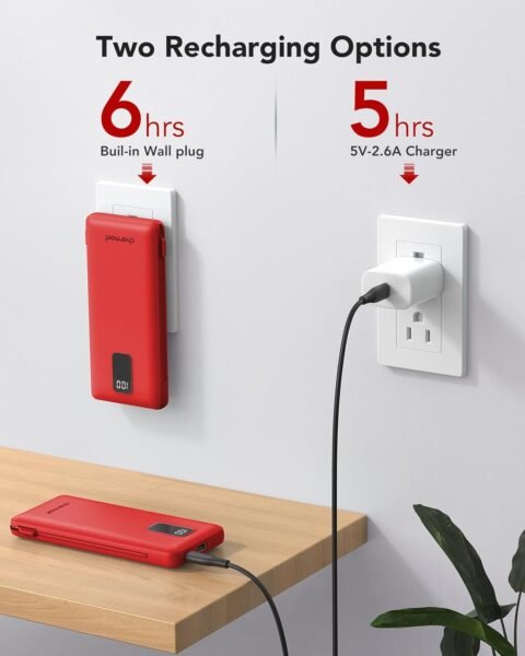 Review: I liked the concept of the Charmast 10000mAh Portable Charger with Built‑in Cables and Plug because it’s very convenient for travel. The built-in cables and wall plug mean you don’t have to carry extra cords, and the size is slim enough to fit easily in a bag or purse. It charged my phone quickly and worked well at first.Unfortunately, after only a few months of regular use, the charger started having issues and eventually stopped working properly. Considering it’s marketed as a reliable travel essential, I expected it to last much longer.It’s a great idea in terms of design and portability, but I was disappointed with the durability. Hopefully this was just a one-off defect, but based on my experience the longevity could definitely be better.