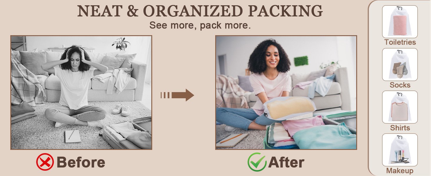 Clear for Quick ID — Semi-transparent design lets you spot items in seconds and keep toiletries, socks, and clothes separate and clean.