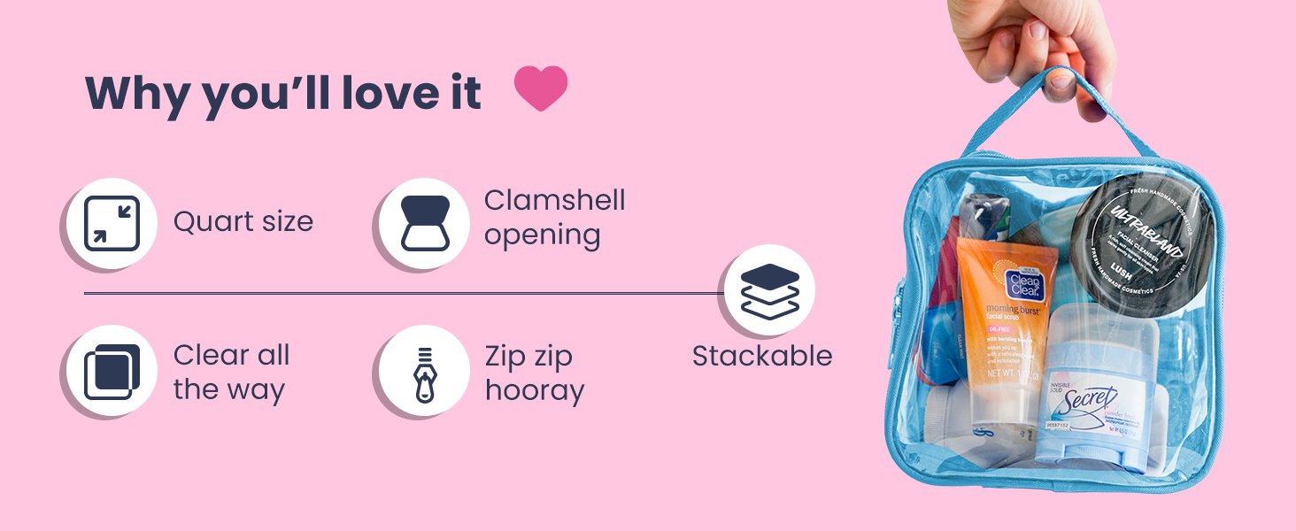Review: I recently bought this for a trip where I just wanted to take a carry-on. It fit all of my items easily – I was surprised at how much it held! So much better than a quart bag 😁. The two zippers allow you to open it flat and put all of your items in and then zip back up. I was able to put 2 layers if travel items in and close easily. So glad I found this! Thinking of getting a 2nd one to put non-liquid items in for organization.