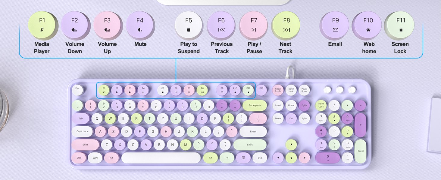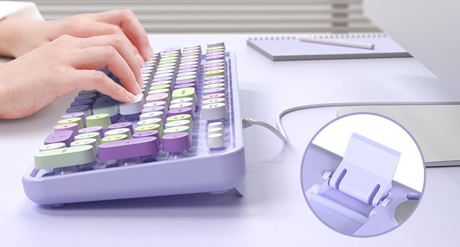 @#@ MOFII Colorful Computer Keyboard Wired, Cute Full Size Keyboard Typewriter Style, USB Keyboard with Foldable Stands for Windows, Laptop, Desktop, PC (Purple Colorful) @@@