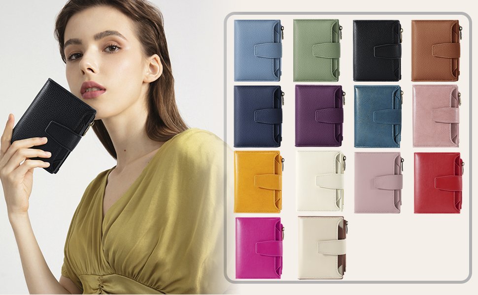 Small Wallet Women RFID Blocking Soft Leather Bifold Compact Card Holder Wallet for Women with Zipper Coin Pocket 4 ID Window