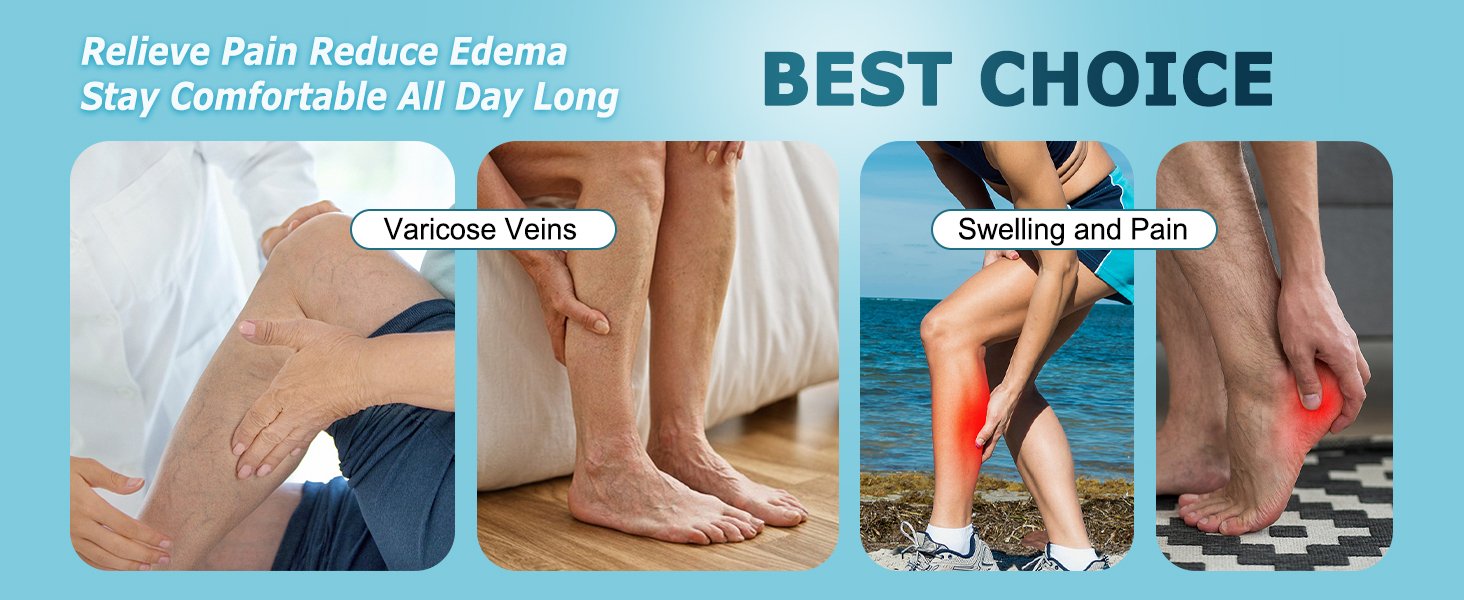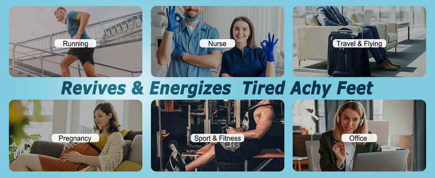 Reduce Injuries – Provide mild squeezing for warmness and enhance blood moving through your legs. Remove stress and stimulate every cell, relieves symptoms varicose veins and excess fluid retention. Help relieve pain & discomfort related to plantar fasciitis, Provides true graduated compression to support your legs, reduce fatigue, soreness, cramping and prevent injuries at the same time.