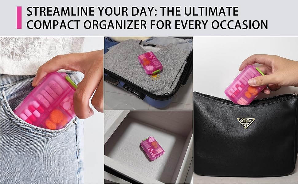 Travel Pill Container Pill Case Travel: Designed for the frequent traveler, this travel pill container features multiple compartments, fitting seamlessly in pockets or travel bags, and includes a secure pill case for safe travel.