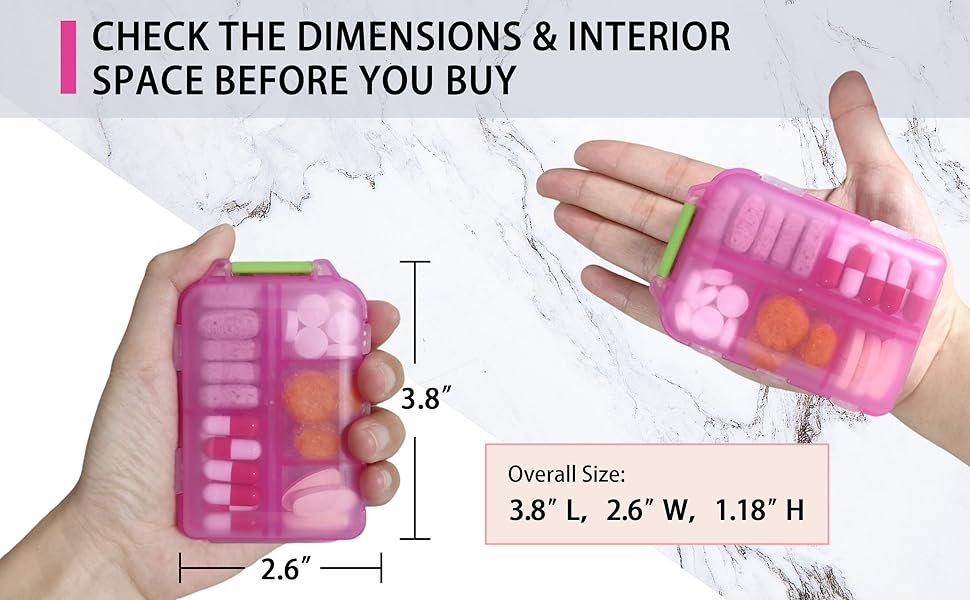 Designed for Convenience: With dimensions of 3.7″ long, 2.4″ wide, and 1.18″ high, this pill organizer is sized to fit in your pocket or purse, combining ultimate portability with ease of use for daily medication management.
