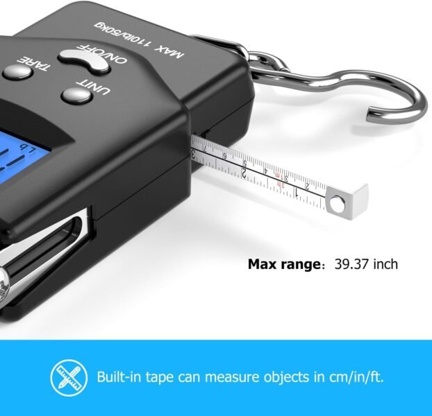 Bonus Built-in Tape: Maybe you also want to know the length of your catch besides weight. We’ve got it covered! The included measuring tape is ideal for measuring items in either cm or ft. (up to 3 ft.)