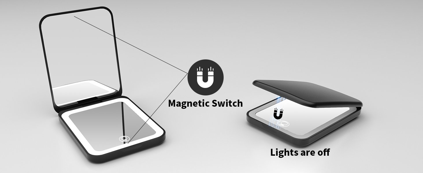 【Soft Light】Long press to adjust the brightness, daylight is excellent, providing a clear view and true color details for makeup 【1X/3X Magnifying Mirror】It is suitable for the entire face makeup and closeup facial groominyg 【Magnetic Switch】Purse mirror has two hidden magnetic power swtich that control LED lighting 【Compact Mirror】It is perfect for your pocket, handbag, purse, and is an ideal portable mirror at home or travel 【Well-Prepared Gift】Elgant mirrors suitable for women of all ages; perfect for birthdays, Mother’s Day, Valentine’s Day, Halloween, Anniversary, Christmas and other special days %$#