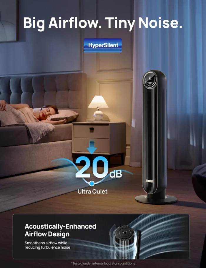 𝐌𝐨𝐫𝐞 𝐏𝐨𝐰𝐞𝐫𝐟𝐮𝐥 𝐰𝐢𝐭𝐡 𝐮𝐩𝐠𝐫𝐚𝐝𝐞𝐝 𝐃𝐂 𝐦𝐨𝐭𝐨𝐫: Thanks to DREO’s upgraded brushless DC motor combined with TurboWind technology, the tower fan achieves faster spin to deliver stronger airflow, with wind speeds reaching up to 28ft/s and projecting up to 34ft. 𝟐𝟎𝐝𝐁 𝐐𝐮𝐢𝐞𝐭-𝐎𝐩𝐭𝐢𝐦𝐢𝐳𝐞𝐝 𝐏𝐞𝐫𝐟𝐨𝐫𝐦𝐚𝐧𝐜𝐞: Enabled by its algorithmic impeller design and the ingenious Coanda effect, combined with upgraded DC motor further reduces noise, lower noise as 20dB, making it ideal for both work and nighttime. The tower fan for bedroom features a Sleep Mode, you can always enjoy all-day quiet. 𝐂𝐮𝐬𝐭𝐨𝐦𝐢𝐳𝐚𝐛𝐥𝐞 𝐂𝐨𝐦𝐟𝐨𝐫𝐭: Featured with 8 speeds settings and 4 modes(Normal/Natural/Sleep/Auto), catering to all your needs—from gentle breezes to powerful gusts across diverse scenarios. Customize your preferred mode and wind speed effortlessly using the remote control or touch screen. 𝐁𝐫𝐨𝐚? 𝐑𝐨𝐨𝐦 𝐂𝐨𝐯𝐞𝐫𝐚𝐠𝐞: 90° oscillation and tuned airflow ensure this standing fan cools more effectively. Use alongside your air conditioner for cost-efficient comfort on hot days. 𝐂𝐥𝐞𝐚𝐧 𝐰?𝐭𝐡 𝐄𝐚𝐬𝐞, 𝐔𝐬𝐞 𝐰𝐢𝐭𝐡 𝐂𝐨𝐧𝐟𝐢𝐝𝐞𝐧𝐜𝐞: Removable rear grille and impeller simplify cleaning. Protected by pinch-proof grille, fused plug, and circuit safety features, this ETL-certified floor fan puts safety first. %$#