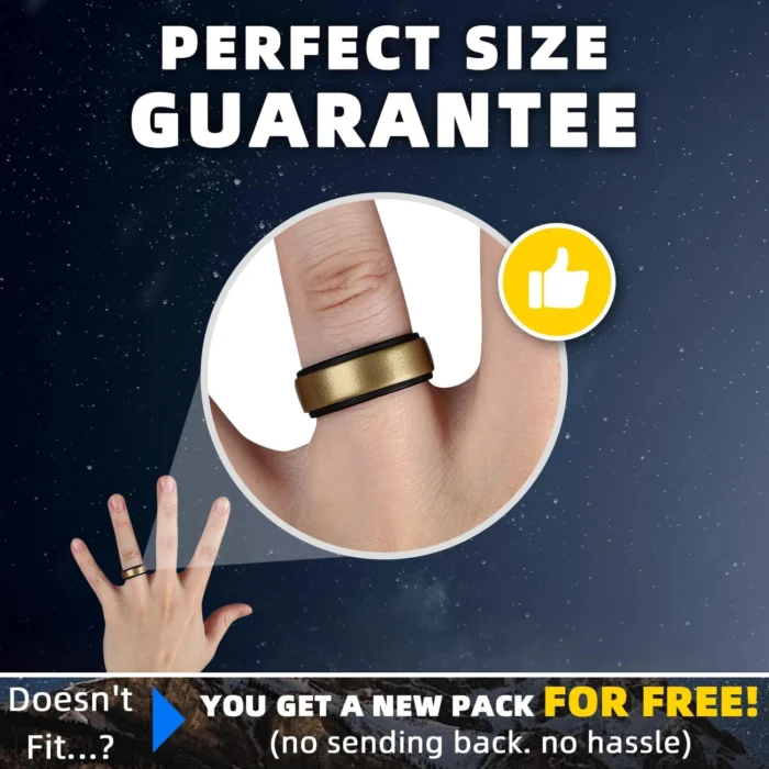 Review: Short version: If you got the wrong size, contact them by email not by Amazon’s order return. Great service, nice rings, excellent value.I followed ring measurement guides carefully. Used a piece of string snugly around my ring finger, then laying over a ruler to determine the circumference of my finger in millimeters. Divide by Pi to get my diameter. Then match diameter to a common ring size. Great.Ordered a four-pack assortment and it arrived quickly, but the rings were way too large for my finger. They actually fit on my thumb, haha. I’m guessing it was my fault, but I measured three times and got the same each time. In any case, I saw the printing on the plastic bag that said a new pack was free if it doesn’t fit. I wrote to the email address on the bag and explained and then guessed a better size — I actually went down two or three sizes from my original.Confirmation email came the next day and new rings just a few days later. They fit perfectly. I’m guessing this happens a lot, but their service seems excellent. The rings are reasonably attractive and comfortable — my metal ring worries me when I’m working with my hands, especially around electrical wiring.