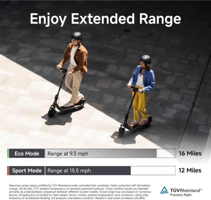 Ride Farther, Charge Smarter: Up to 16 miles range in Eco Mode and 12 miles in Sport Mode with a 220Wh smart battery — perfect for daily commutes or weekend rides.