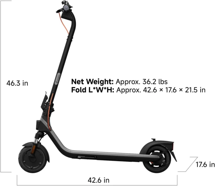 Review: I did a lot of research towards finding a reliable commuter scooter to get me from point a to b, safely, reliably, and on time to the locations I need to be. This scooter was a resale scooter and came packaged in an almost new box. The packaging of the scooter was done well and secured the scooter inside well. The instruction manual was a little confusing at first because of all of the different languages on the same page. It came charged at 74% and didn’t take that long to change it up to 100%. I believe it took an hour and a half or so. I thought it would be very light for some reason but found out that it’s heavy. Like 41 pounds. It wouldn’t be that fun if I had to carry it a long distance. But the alternative to that is pushing it. The app to get it starting is easy to navigate. If you are connect the find my app to your scooter make sure your iPhone operating system is updated. If it’s an outdated version, it will not connect to the find my app. To change the speed modes press the power button twice. To turn on/off the ambient light press the power button three times. I took the vehicle 3.5 miles in sport mode my first ride. It took less than 15mins. The speed was great too. Down hill I got it to a max of 22 MPH. Pass that it will start to beep. Uphill, and in my neighbor the hill are steep, I did very well at 10 MPH. The brakes level is on the left side. It took some getting use to. I love the the signal light and the break lights for safety. All the light feature are cool. The ride is also smooth. I’m pleased with my first ride. After a few months I’ll give another update.