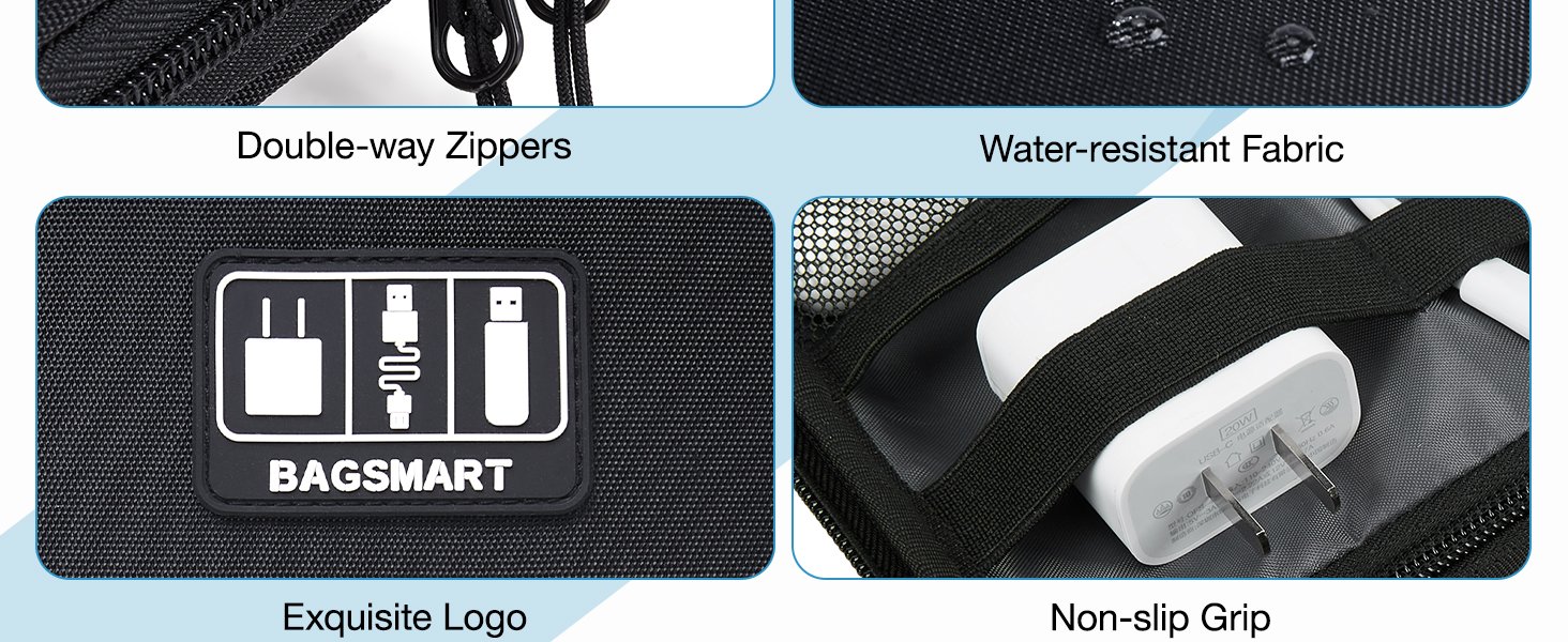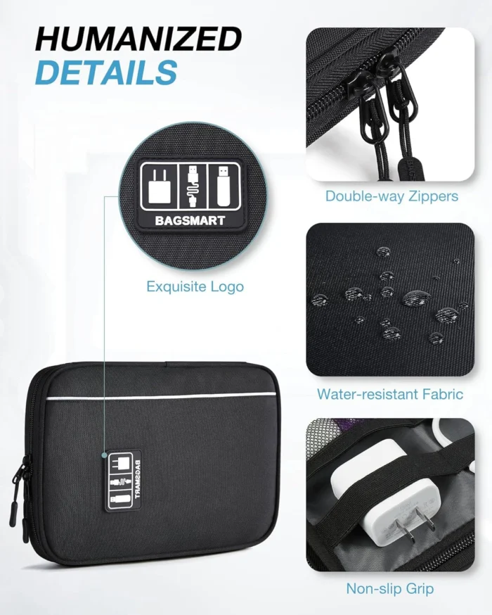 @#@ BAGSMART Large Electronics Travel Organizer Case, Tech Accessories Cord Storage Bag for Phone, Power Bank, SD Card, Cables, Black @@@