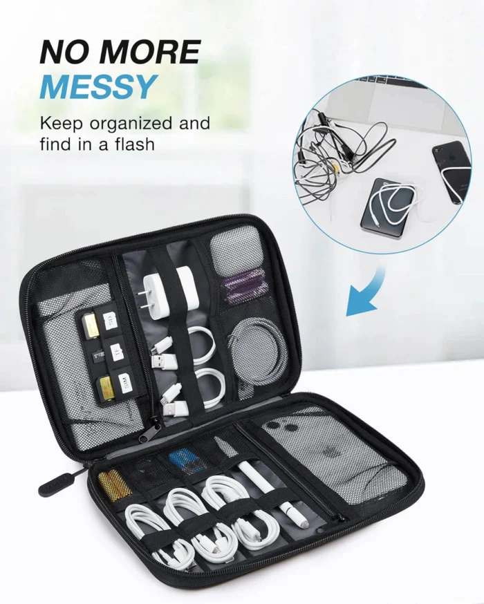 Keep Everything Organized: This compact travel organizer features dedicated compartments for your phone charger, cables, and tech accessories, keeping them tangle-free and ready to go. You can find travel accessories quickly, no chasing cords in your pack anymore. A great partner for your gadgets when travelling or in the office