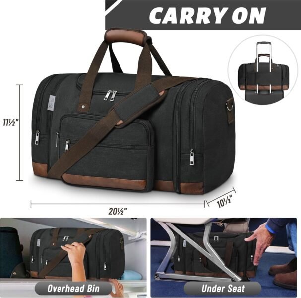 Duffle Bag for Travel,Overnight Weekend Gym Carry On Luggage Bag, 50L Canvas Travel Duffel Bag for Men Women, Expandable Spacious Travel Duffel Bag, Black