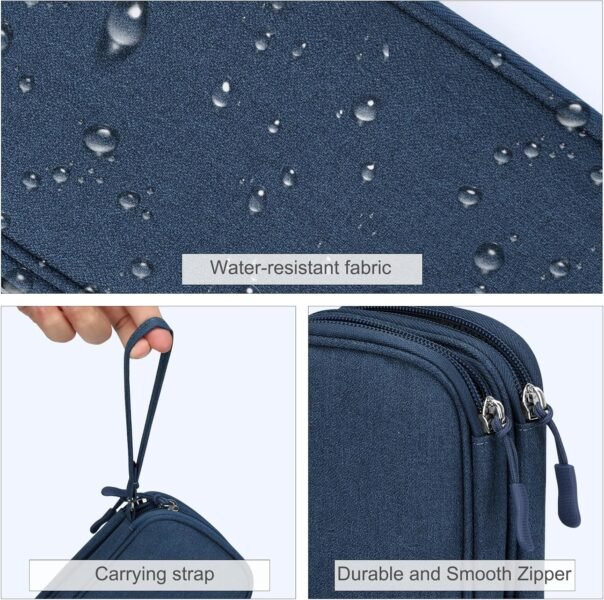 Dimensions: The Size of the cable storage travel case: 7.5″ x 4.3″ x 2.2″. Compact size and lightweight make it easy to carry and put into your backpack, handbags or laptop bag without taking much space. Suitable for family use and daily organization. Quality Material: This electronic organizer travel case made of high quality durable waterproof oxford and soft sponge inside to secure your gadgets in place and deliver a quick access whenever you want, a perfect case protects your electronics accessories. Double Layers Design: The electronics storage bag has 2 layers interior compartment with enough space to take in your cords, cables, USB drive, cellphone, charger, mouse, flash drive, and other accessories. Practical and Convenient: Comes with a comfortable hand strap for easy carrying; You may carry it in your hand when heading out. Durable and smooth zipper closure keeps your favorite device securely, convenient for you to have quick access to the items inside the case. Portable and Lightweight: The small size and lightweight design durable cable organizer pouch is a perfect choice when going on holiday, business trip, travel, office. Great gift for yourself also a nice share with families and friends. (No include cords, electronic accessories) %$#