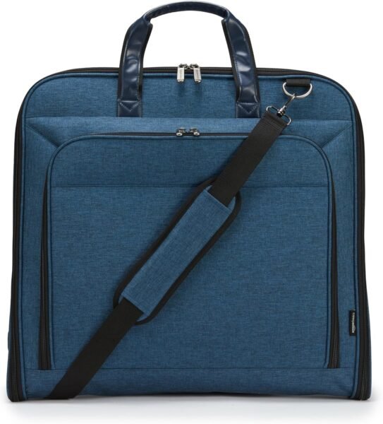 Review: This Amazon Basics garment bag has solid construction and a nice design overall. The trifold style and shoulder strap make it convenient to carry, and it seems like it would work well for car travel or shorter trips where space isn’t a big concern.That said, it didn’t quite work for my needs. Once filled to capacity, it became too heavy and bulky, making it awkward to carry—especially if you’re navigating an airport. For air travel, I found it a bit impractical, and I ended up returning it.Pros:   •   Good material quality   •   Trifold design helps keep garments relatively wrinkle-free   •   Handy for car tripsCons:   •   Gets heavy quickly when fully packed   •   Not ideal for plane travel—too bulky for easy handling   •   Shoulder strap isn’t very comfortable with a full loadIf you’re using this mainly for driving trips or packing light, it could be a great option. But for air travel or heavier packing, you might want something more compact and easier to maneuver.