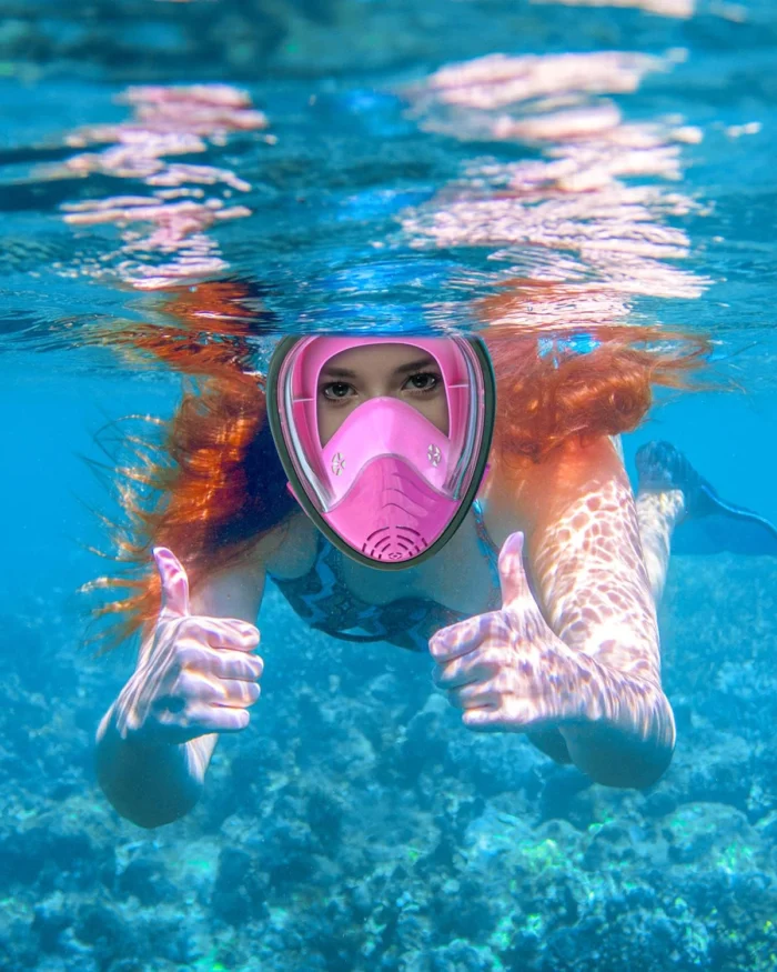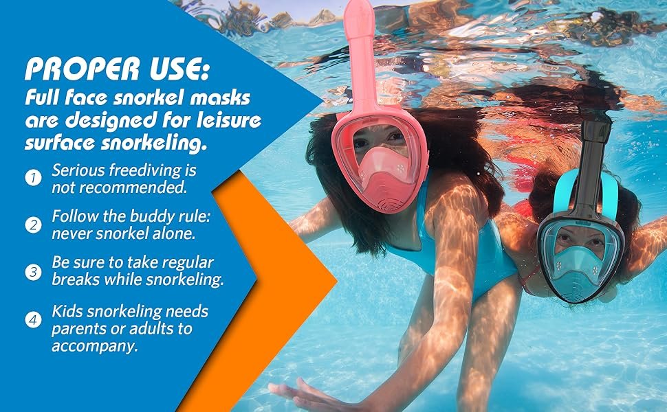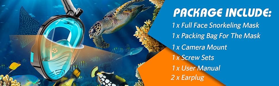 Review: It’s my first time snorkeling and I’m in love. I am not a mouth breather and could not get used to the old style snorkel. This was perfect for me. Didn’t leak, felt comfortable, and great viewing. I actually fell on my face getting out on some rocks and it totally protected me and didn’t crack which was shocking to me. The quality and design are great. I don’t dive under the water so I can’t attest to that part. I will say that after a long time snorkeling, I do need to take it off and get some fresh air.