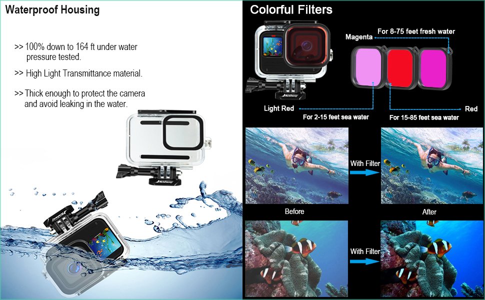 – The Waterproof Housing in this Kit is only fit for Go pro Hero 13/12/11/10/9 Black.