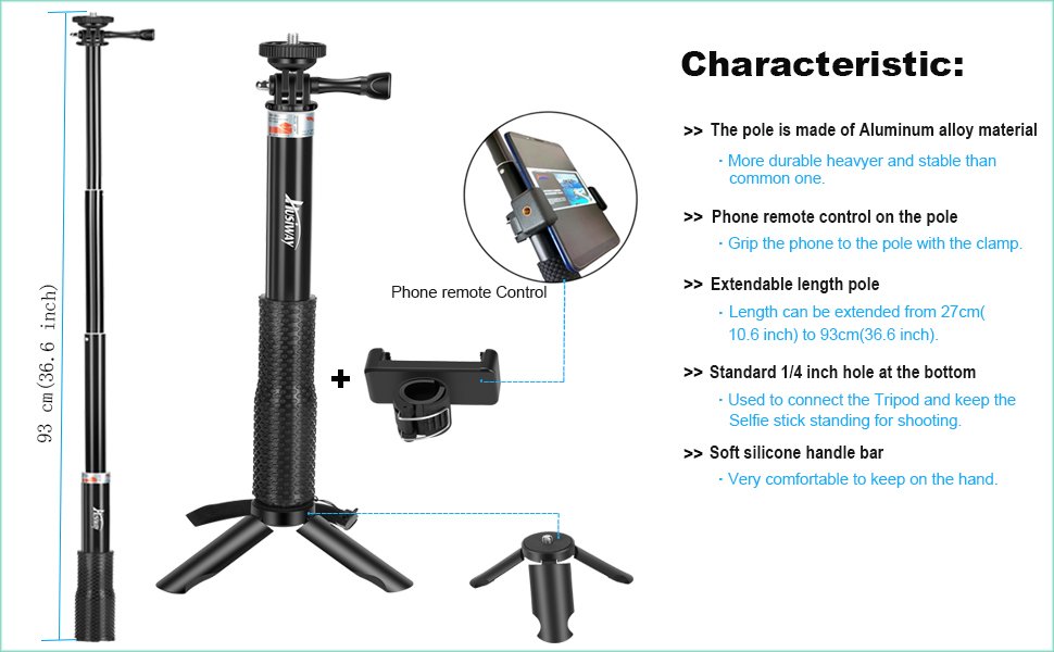 The Selfie Stick is made of Aluminum Alloy – durable with length of 36.6 inch. The quality and function is much better than the ones in other Kits.