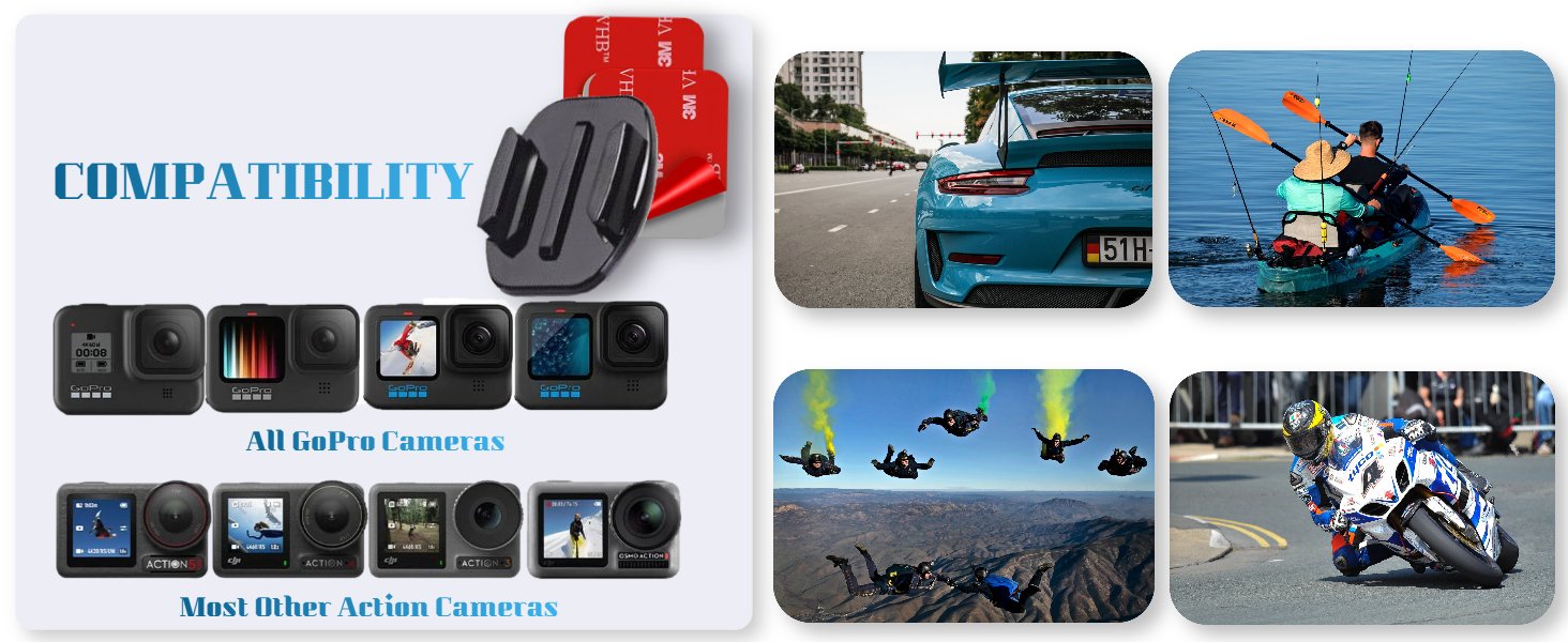 Broad range of compatibility: MiPremium adhesive mounts are widely compatible with all GoPro Hero 13 12 11 10, 9, 8, 7, 6, 5, 4 HERO (2018) models and all other action cameras. Ideal for motorcycle lovers, photography enthusiasts, drone enthusiasts, and outdoor hikers.