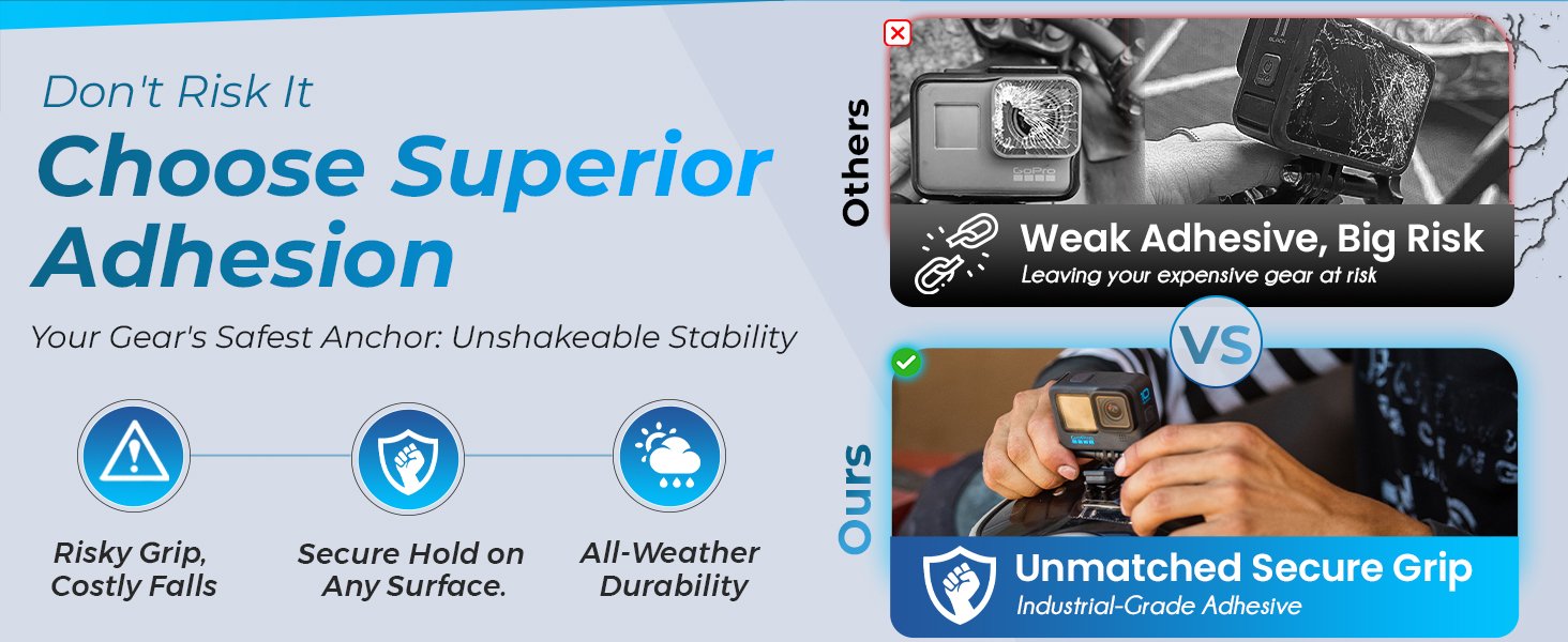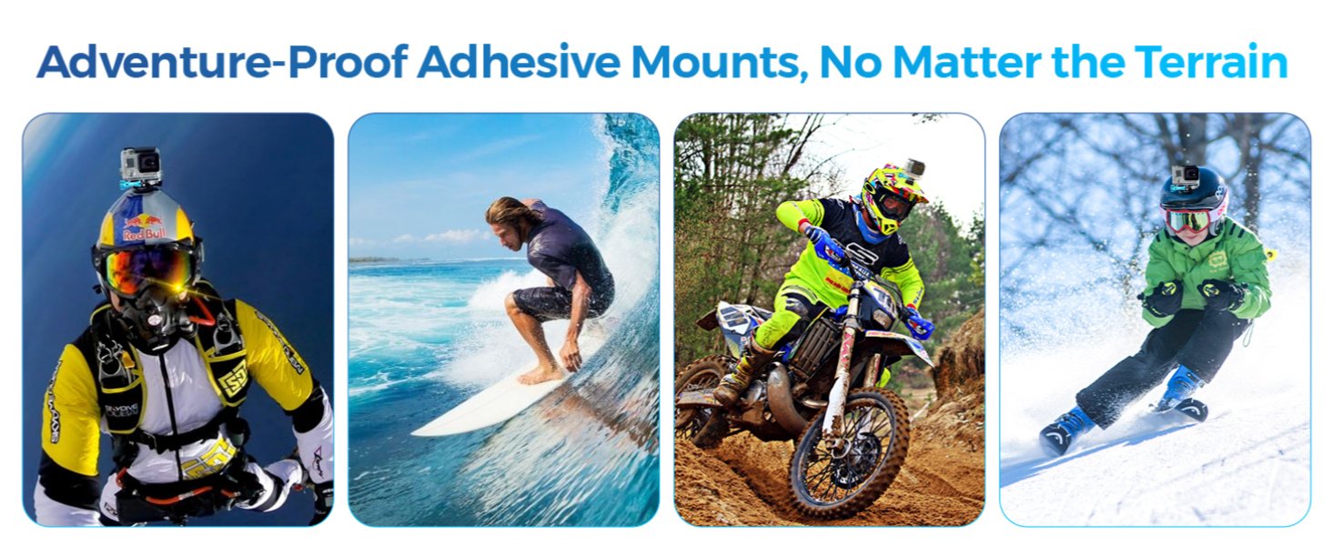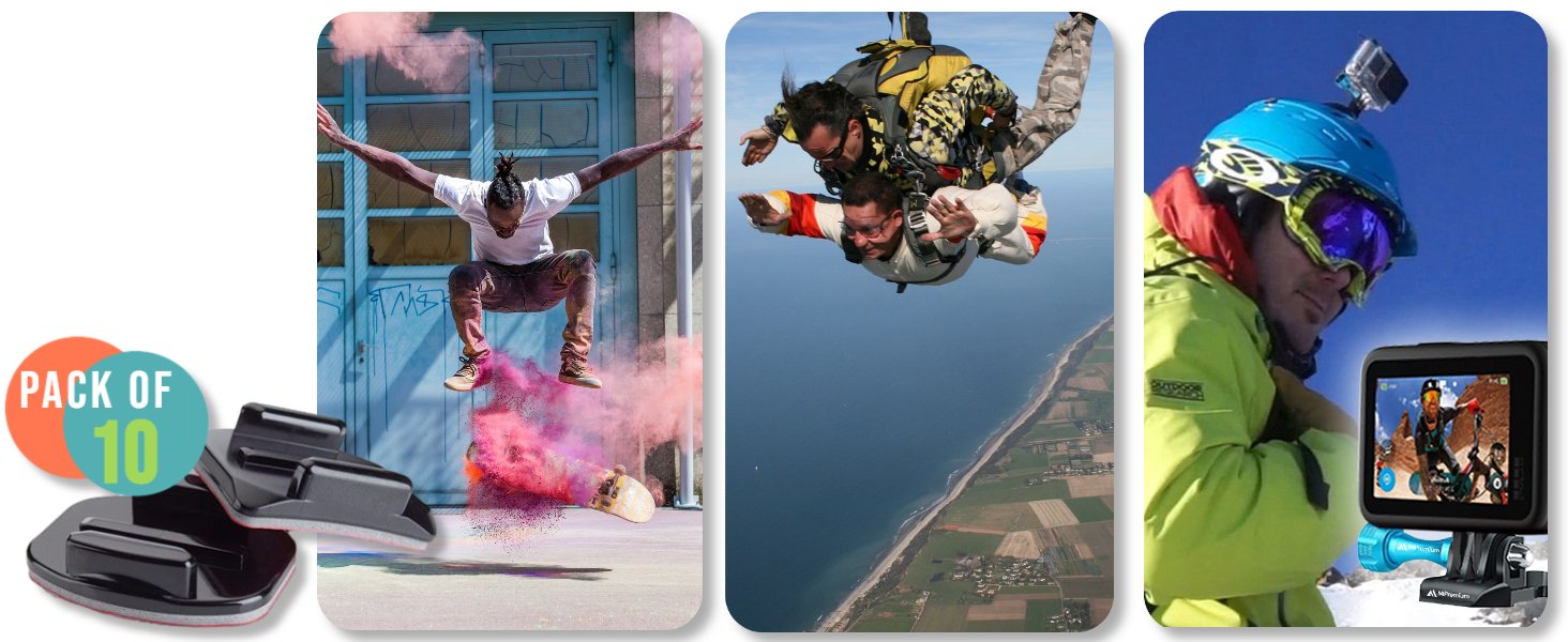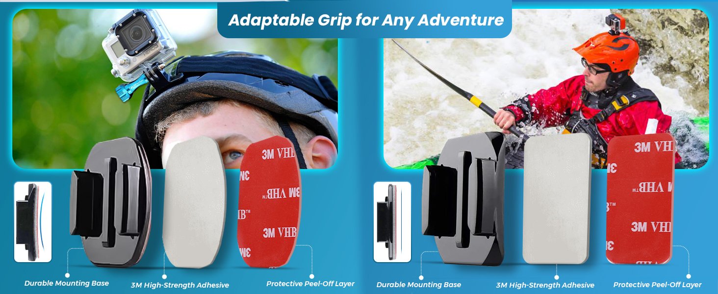 Never lose another GoPro camera: These flat & curved adhesive mount pads for go-pro are industrial-strength waterproof, perfect for all weather conditions. Ideal for a wide variety of curved and flat surfaces. Our adhesive sticky pads are strong and solid. It offers the flexibility to attach on any flat & curved surface of your head helmet or a flat base and ensures secure mounting. Our mounting accessories are ideal for helmets, ski, skate, surf boards, dashcam or kayak.