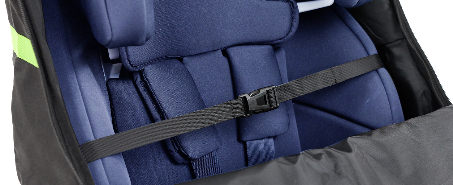 The universal size of the car seat travel bag for airplane fits most major brands including Graco, Nuna, Britax, and Evenflo. The secure internal tightening strap helps to keep your seat snugly in place during transport.