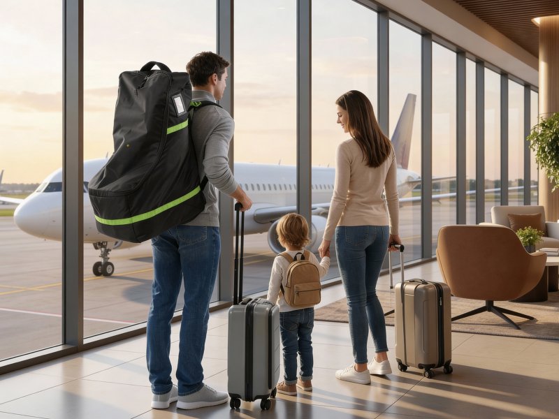 The car seat travel bag for airplane is designed with thick 600D dual-layer fabric and internal padding to guard against impact, scratches, and rough handling. Its durable exterior also helps keep out dirt and debris.