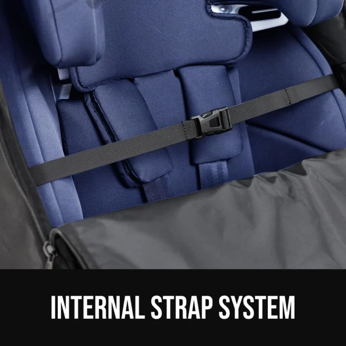 UNIVERSAL SIZE WITH SECURE INTERNAL STRAP SYSTEM: compatible with most major carseat brands including Graco, Nuna, Britax, Evenflo and more; features internal tightening strap to help keep car seat snug and secure during transport; roomy interior fits seats measuring up to 28 inches x 17 inches x 17 inches; flexible fit design is compatible with most rear facing, front facing and booster seats; car seat should be fully collapsed and compact with headrests lowered and footrests tucked away when storing